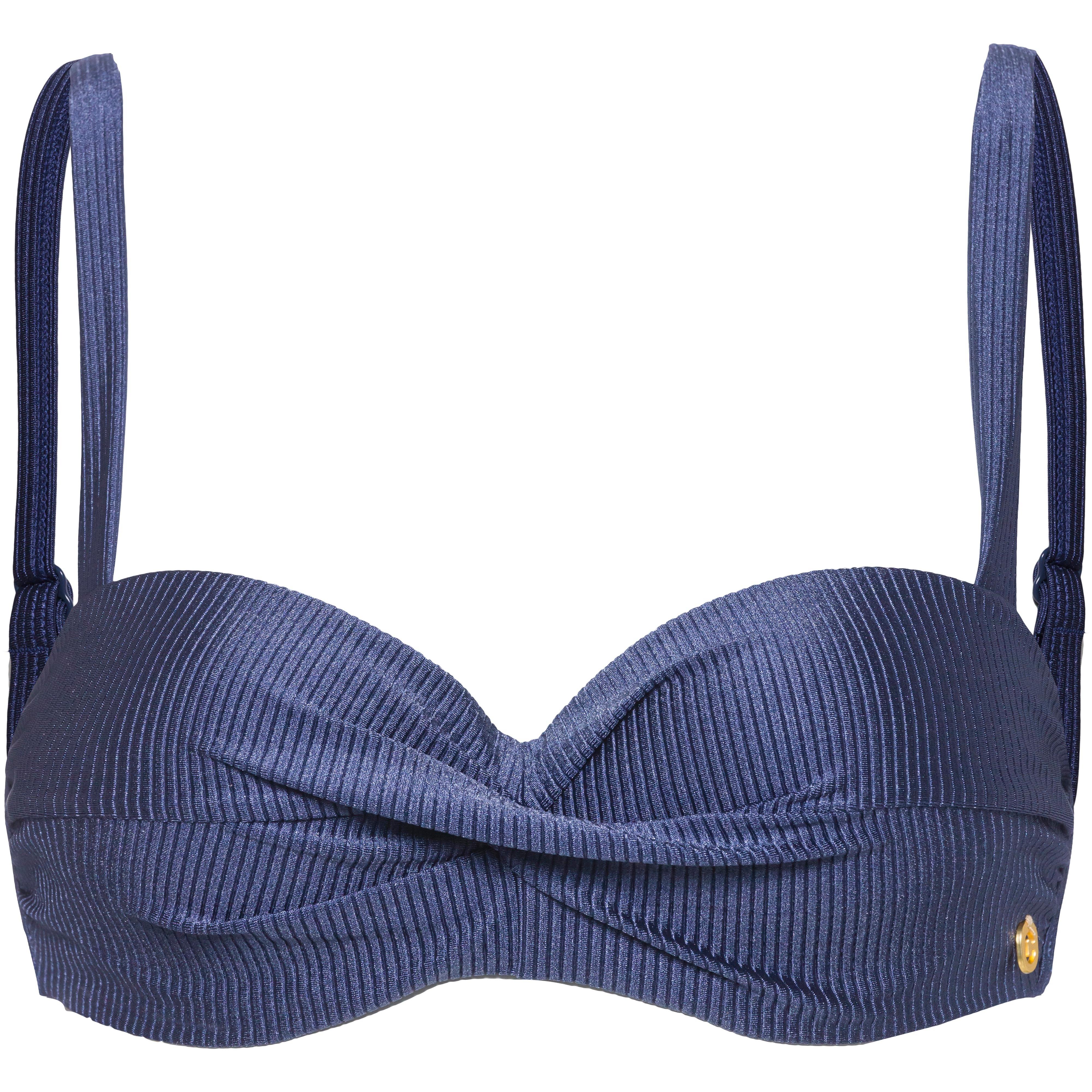 Bikini-Oberteil mit Bügeln; die Träger können in verschiedenen Arten getragen werden, ob normal, im Rücken überkreuzt oder als Neckholder; Größen verstellbare Träger; vorgeformte Cups mit Polsterung; strukturiertes Gewebe; Antirutschbeschichtung im Rückenbereich; Material 77% Polyamid (recycelt), 23% Elastan.