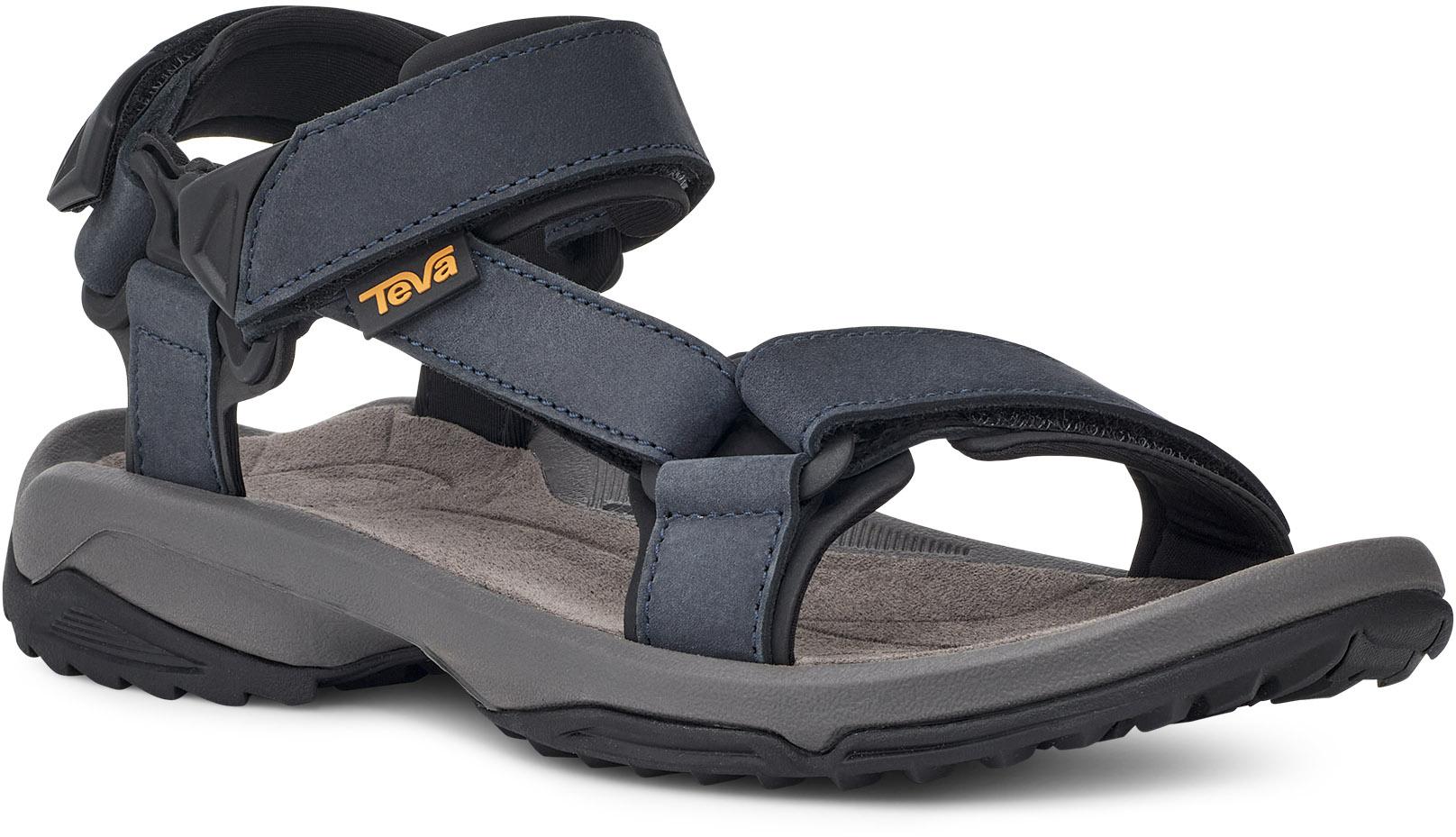 Teva TERRY FI LITE LEATHER. Outdoorsandalen aus weichem Wildleder; innen mit Neopren gepolstert; Riemen am Spann, Knöchel und an der Ferse durch Klettverschlüsse verstellbar; vorgeformtes Fußbett aus Wildleder; Shoc Pad im Fersenbereich für optimale Dämpfung beim Laufen; Zwischensohle mit Nylonplatte; Gummi-Außensohle mit trittfestem Profil.