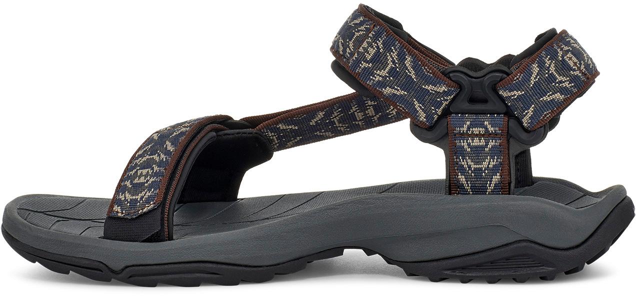 Leichte Outdoorsandalen mit 3 Klettverschlüssen, zur optimal personalisierbaren Anpassung; Riemen mit weichen Polstern aus Neopren; vorgeformtes Fußbett; dämpfende Shoc Pads im Fersenbereich; Material Synthetik und recyceltem Polyester; abriebfeste Außensohle mit griffigem Profil.