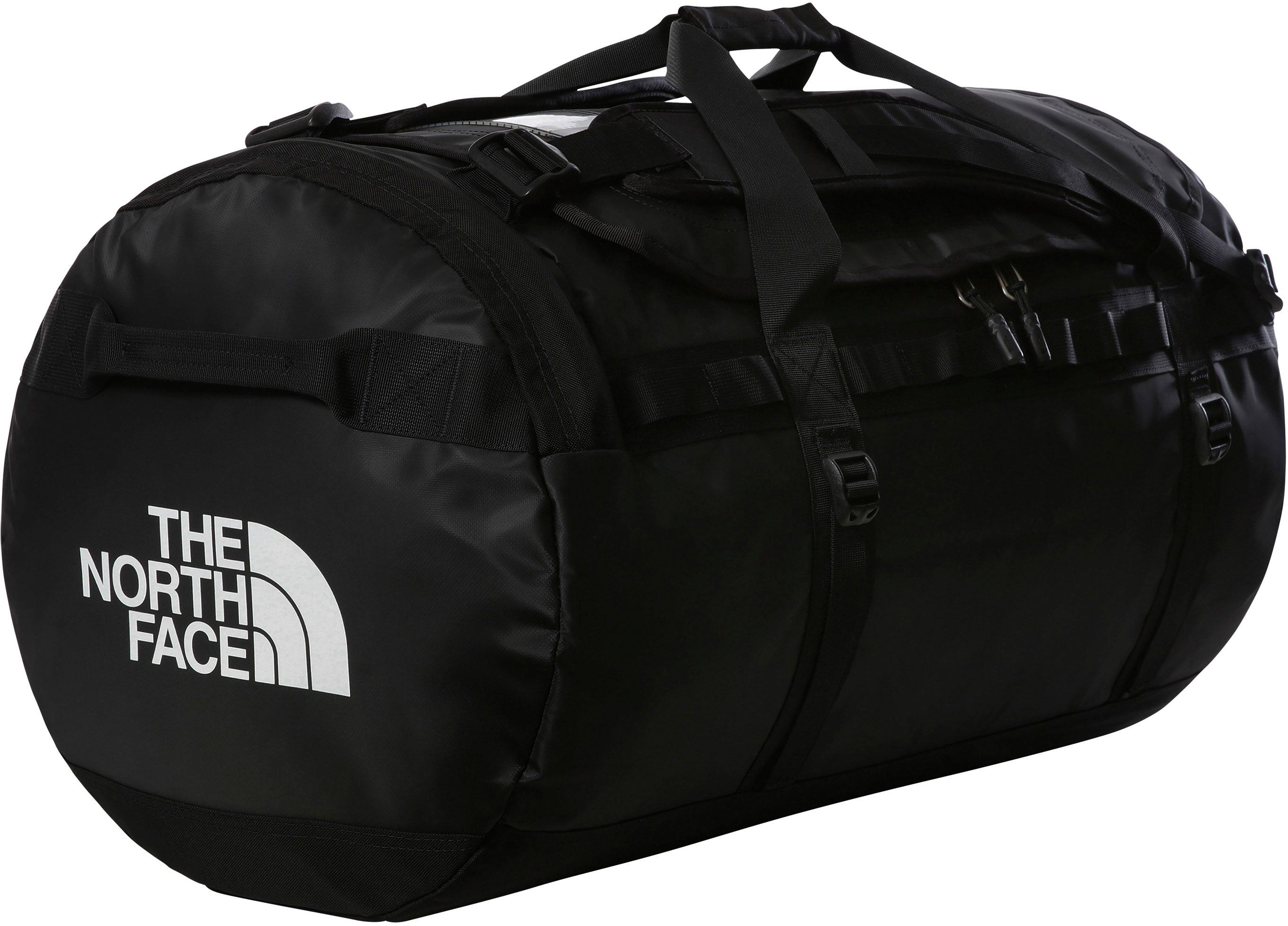 Reisetasche in geräumiger Größe; aus hoch strapazierfähigem Base-Camp-Gewebe mit PVC-Beschichtung; als Tragetasche mit 2 Griffen oder als Rucksack mit abnehmbaren, verstellbaren Schultergurten verwendbar; Boden mit dauerhaft wasserabweisender, ohne PFC hergestellter Imprägnierung; D-förmige Deckelklappe mit wasserdichter Reißverschlussabdeckung; Hauptfach mit internen Netztaschen; Seitenfach, ideal für Schuhe und nasse Kleidung; wasserfestes Ausweisfenster; 4 Kompressionsriemen; Mesh-Bag-Verpackung; Gewicht: ca. 1.840 g; Volumen: 95 l; Maße (H/B/T): ca. 41 x 71 x 41 cm; mit Recyclingmaterial hergestellt.