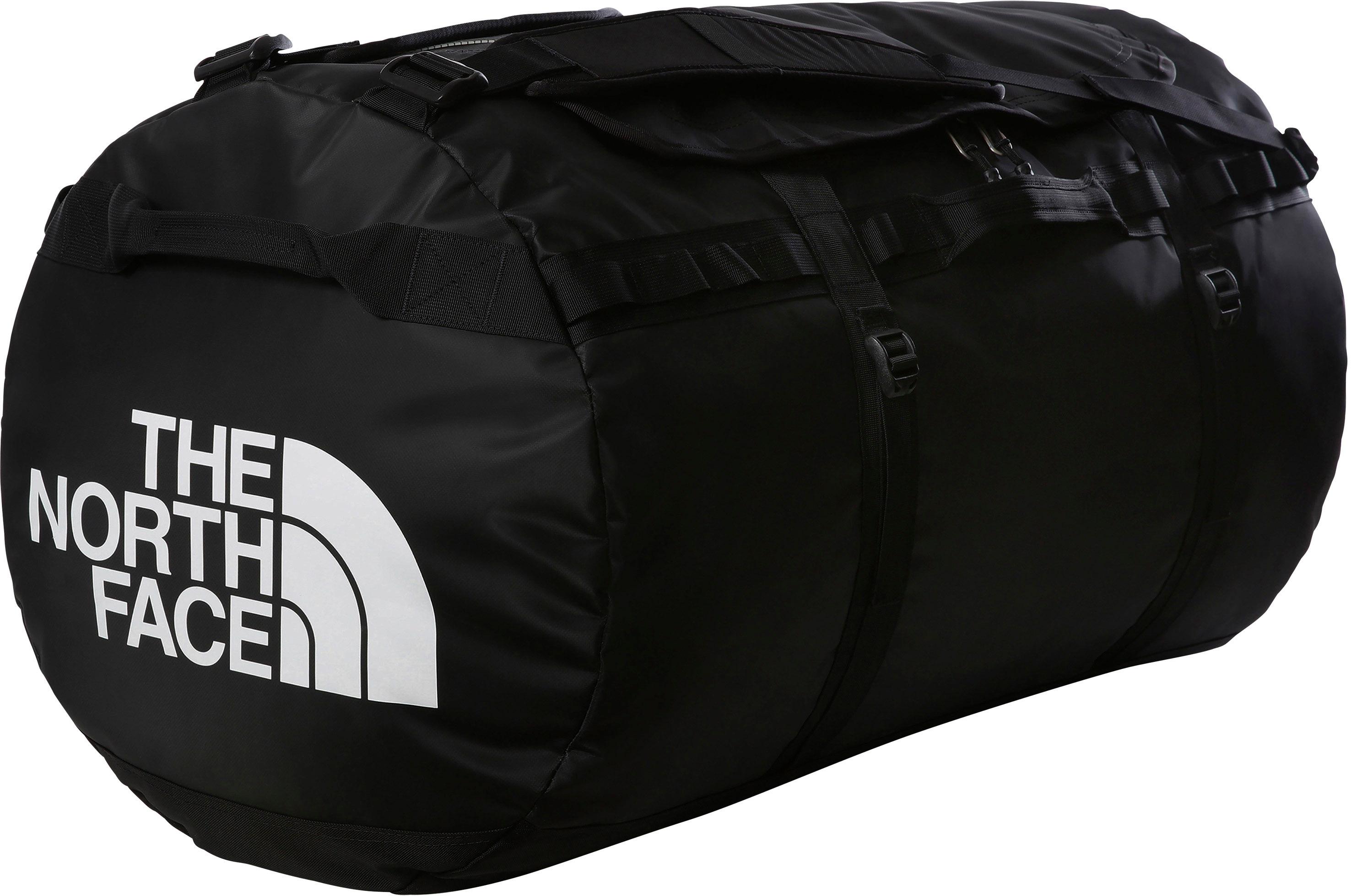 Extra große Reisetasche mit 2 Tragevarianten; Tragetasche mit 2 Griffen oder Rucksack mit abnehmbaren, verstellbaren Schultergurten; aus hoch strapazierfähigem, wasserabweisendem Gewebe mit ohne PFC hergestellter Beschichtung; D-förmige Deckelklappe mit wasserdichter Reißverschlussabdeckung; Hauptfach mit internen Netztaschen; wasserfestes Ausweisfenster; 4 Kompressionsriemen; Mesh-Bag-Verpackung; Gewicht: ca. 2.850 g; Volumen: 150 l; Maße (H/B/T): ca. 48,3 x 80 x 48,3 cm; mit recycelten Materialien hergestellt.
