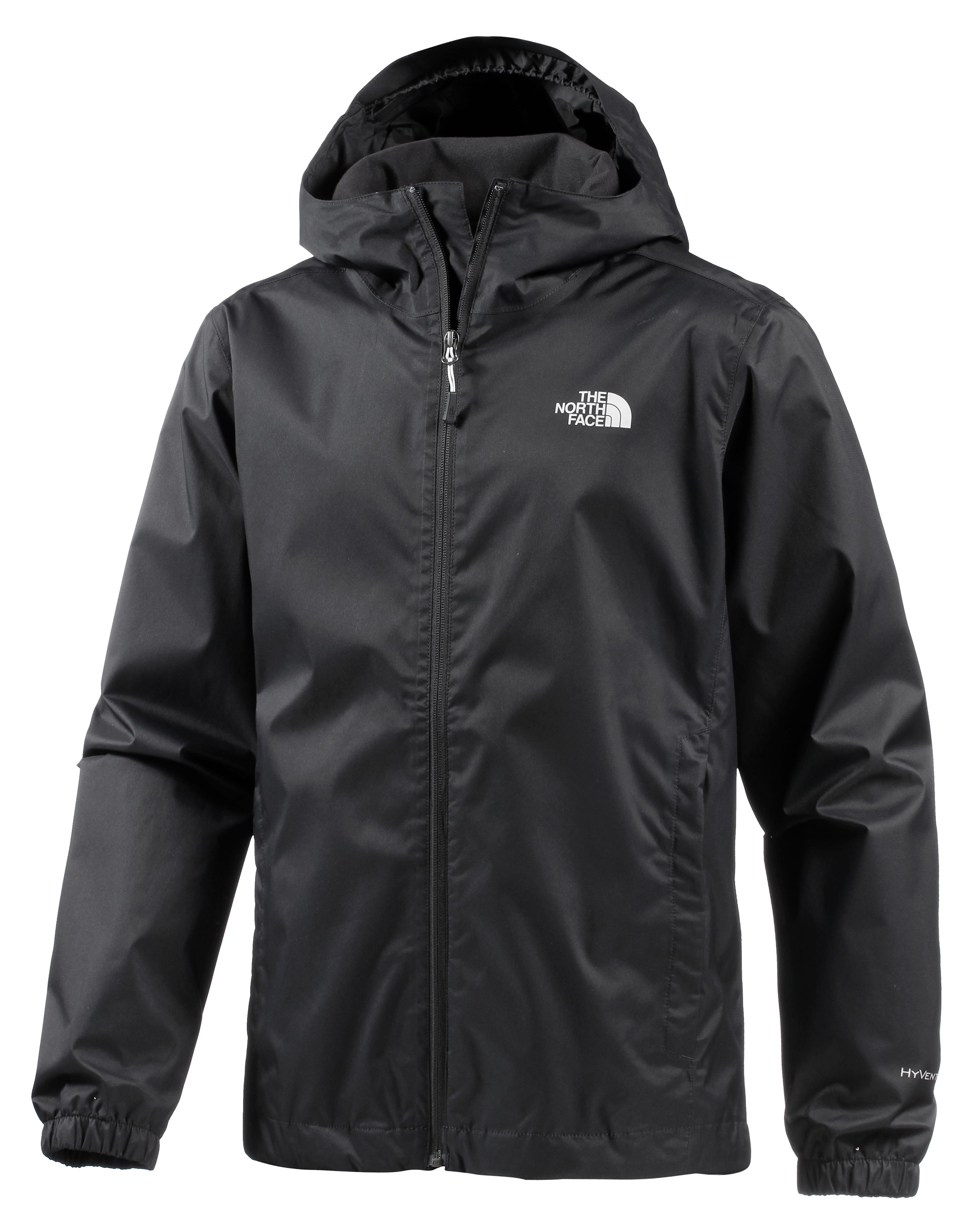 The North Face QUEST. Regenjacke mit wind- und wasserdichter Hyvent®-Ausrüstung, wasserabweisenden Reißverschlüssen und atmungsaktivem Meshfutter, bietet besten Schutz vor schlechtem Wetter bei alpinen Unternehmungen. Angeschnittene Kapuze mit Schirm, Stehkragen mit weichem Mikrofleecefutter, unterlegter Frontreißverschluss; 2 Seitentaschen mit verdecktem Reißverschluss, elastische Armabschlüsse sowie Kordelzug und Stopper im Saum; 100% Polyester.