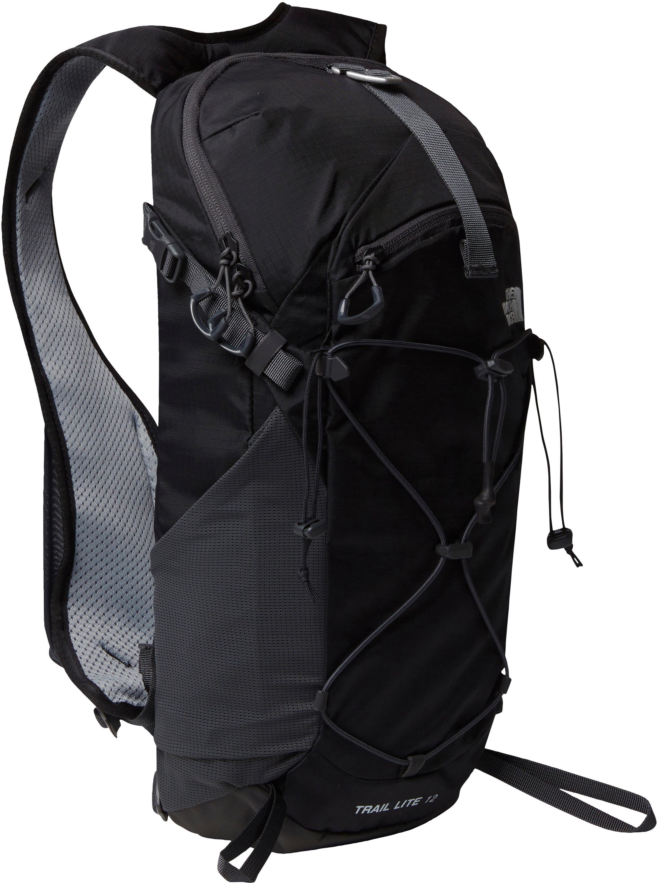 Wasserabweisender Wanderrucksack mit ohne PFC hergestellter Beschichtung; Rückenpanel und Schulterträger sind atmungsaktiv; duale Brustgurte; Hauptfach mit Reißverschluss; innere Netztasche mit Schlüsselhaken; internes Trinkblasenfach; Netztaschen an den Schulterträgern; leicht zugängliche Netzseitentaschen für Wasserflaschen; seitliche Kompressionsriemen; Halterungssystem für Trekkingstöcke und Eispickel; Bungeekordelsystem zur Fixierung weiterer Ausrüstung; reflektierende Details; Volumen: 12 l; mit recycelten Materialien hergestellt.