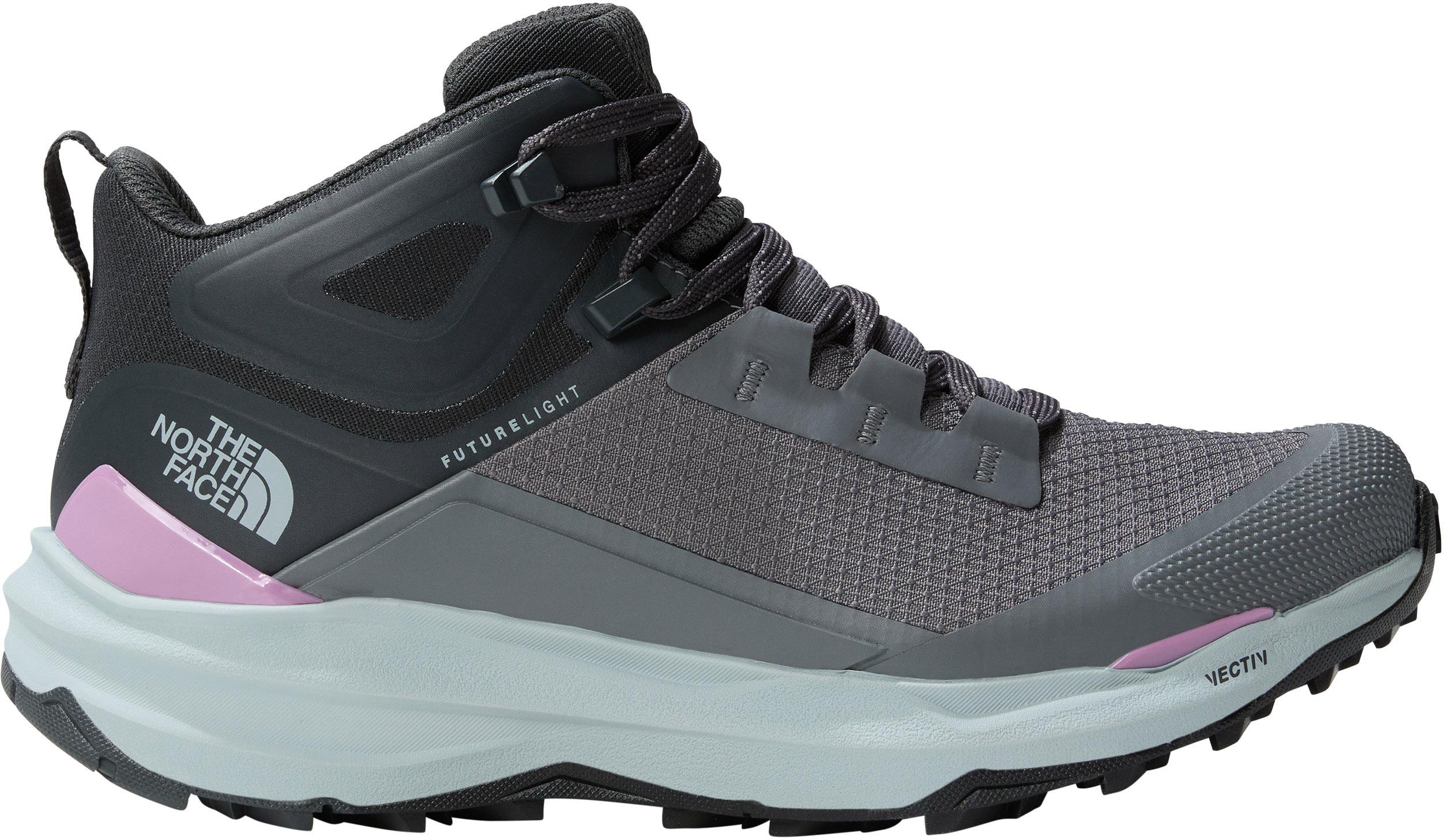 Knöchelhohe Wanderschuhe für Damen mit FUTURELIGHT™-Membran; die branchenführende FUTURELIGHT™ Technologie von The North Face sorgt für maximalen atmungsaktiven und wasserdichten Schutz; das FUTURELIGHT™ Material wird mit Nanospinning-Technologie auf Basis nachhaltiger Prozesse hergestellt und ist aktuell das technisch am höchsten entwickelte, atmungsaktive und wasserdichte Material für die äußere Kleidungsschicht; mit robustem Cordura®-Obermaterial; Zehenkappe aus Gummi; klassische Schnürung mit Schlaufen und Ösen; gepolsterter Schaft; Textilfutter; OrthoLite® X55™ Fußbett mit recycelten Materialien; die Single-Density-3D-TPU-Platte bietet mehr Stabilität; hervorragend gedämpfte EVA-Mittelsohle im Rocker-Design; VECTIV-Technologie zur Maximierung der Energie auf dem Trail; Surface Control™-Gummi-Außensohle mit 4 mm Stollen für gute Traktion.