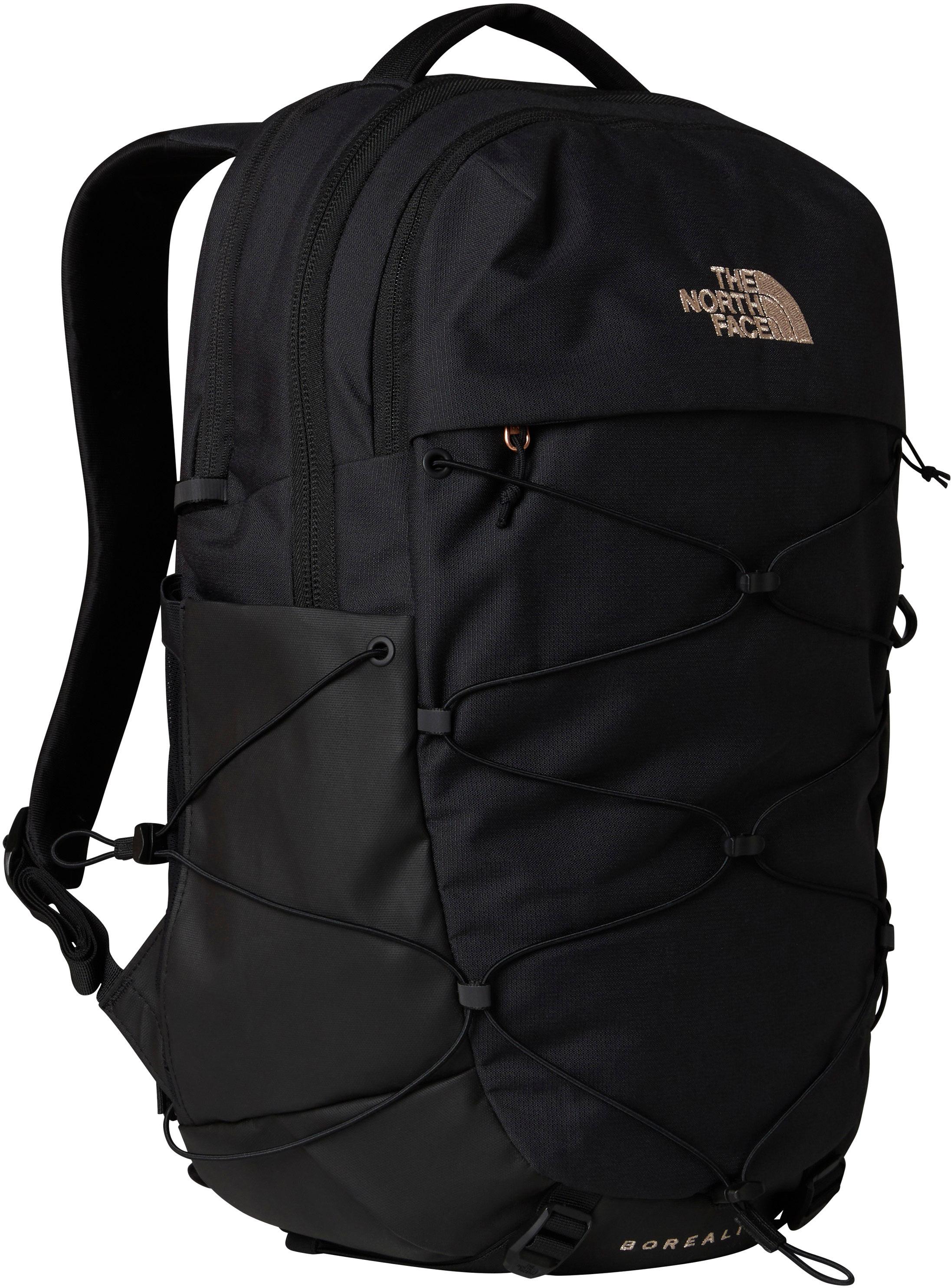 Daypack mit gepolstertem Laptopfach für Geräte bis zu 13 Zoll; mit dauerhaft wasserabweisender, ohne PFC hergestellter Beschichtung; frauenspezifisches Flexvent™-Tragesystem mit flexiblen Schultergurten, gepolstertem Rücken und atmungsaktivem, vorgeformtem Lendenbereich; Brustgurt mit Signalpfeife; abnehmbarer Hüftgurt; geräumiges Hauptfach mit inneren Organizer-Fächern; Fronttasche; fleecegefütterte Außentasche; schnell zugängliches Smartphone-Fach; Seitentaschen für Flaschen und Kleinkram; Bungeekordel-Kompressionssystem zur Fixierung weiterer Ausrüstung; reflektierende Details; Volumen: 28 l; aus recycelten Materialien.