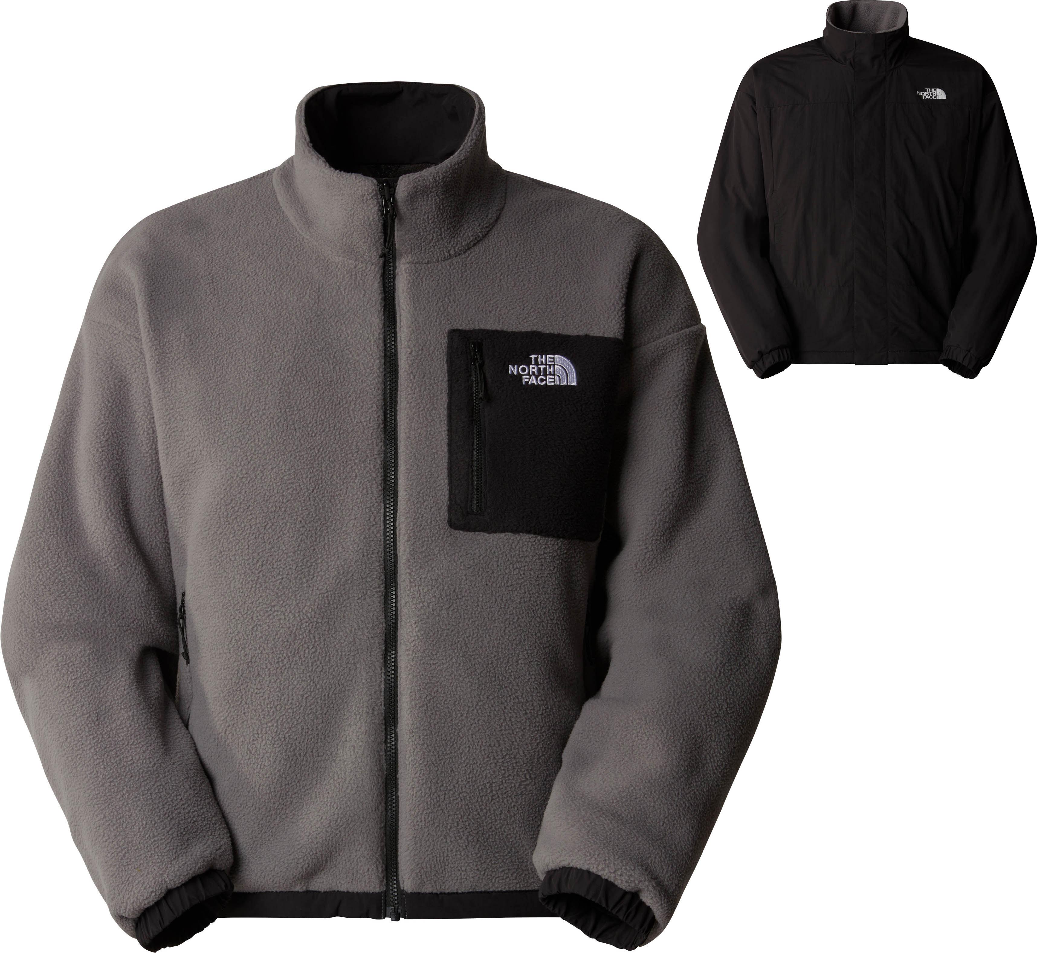 Wendejacke aus kuscheligem Fleece-Material mit durchgehendem Frontreißverschluss; 2 Tragevarianten in unterschiedlichen Farben; 1 Brusttasche mit Reißverschluss; Logostickerei auf der Vorder- und Rückseite; Material 100% Polyamid.