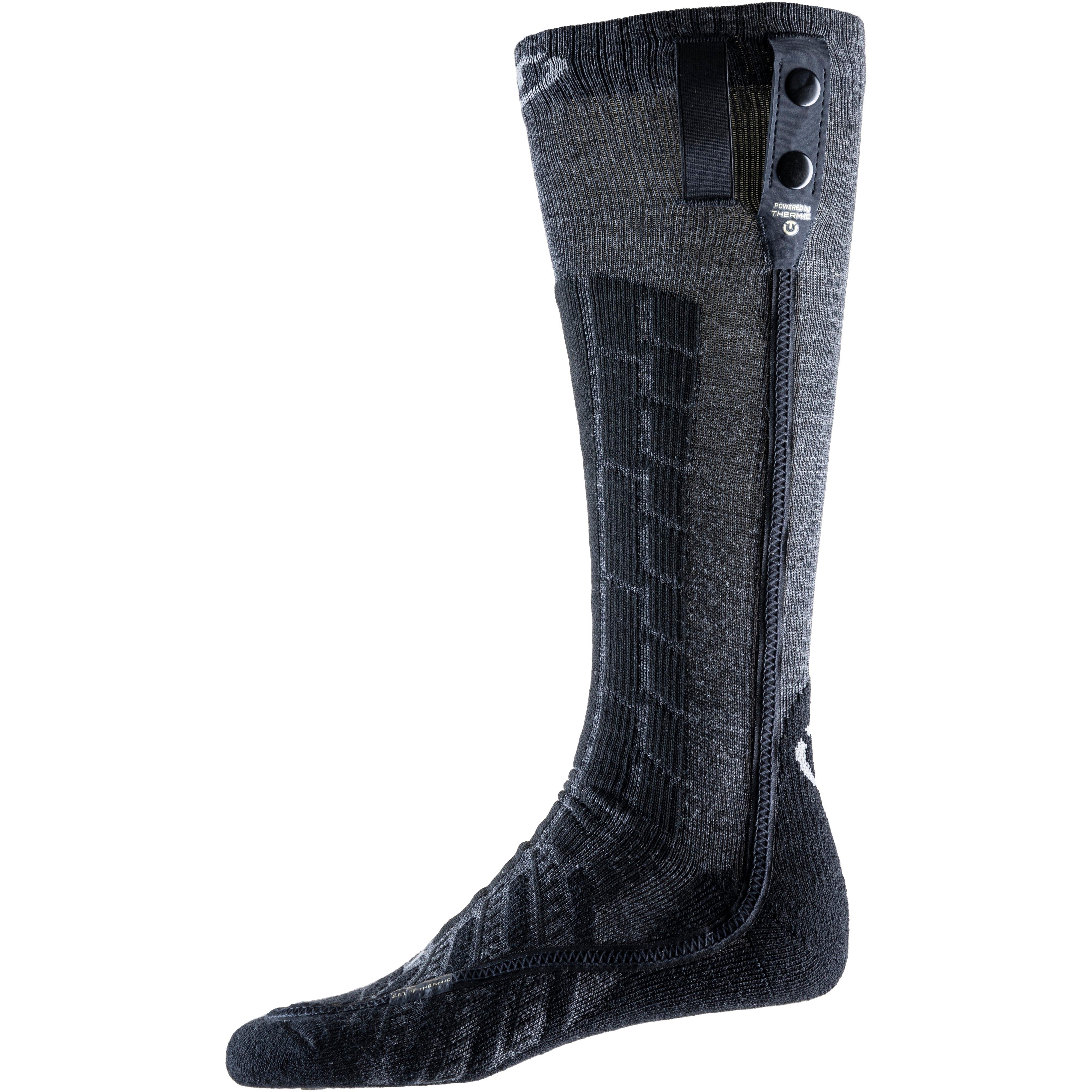 Skisocken mit integrierter S.E.T.® Heizfunktion; die Mikrokanäle sorgen für ein angenehmes Fußklima; der Merinowollanteil sorgt für ein weiches Tragegefühl und eine geruchshemmende Funktion; verstärkter Zehen- und Fersenbereich; Material 48% Polyamid, 50% Wolle (Merinowolle), 2% Elastan.