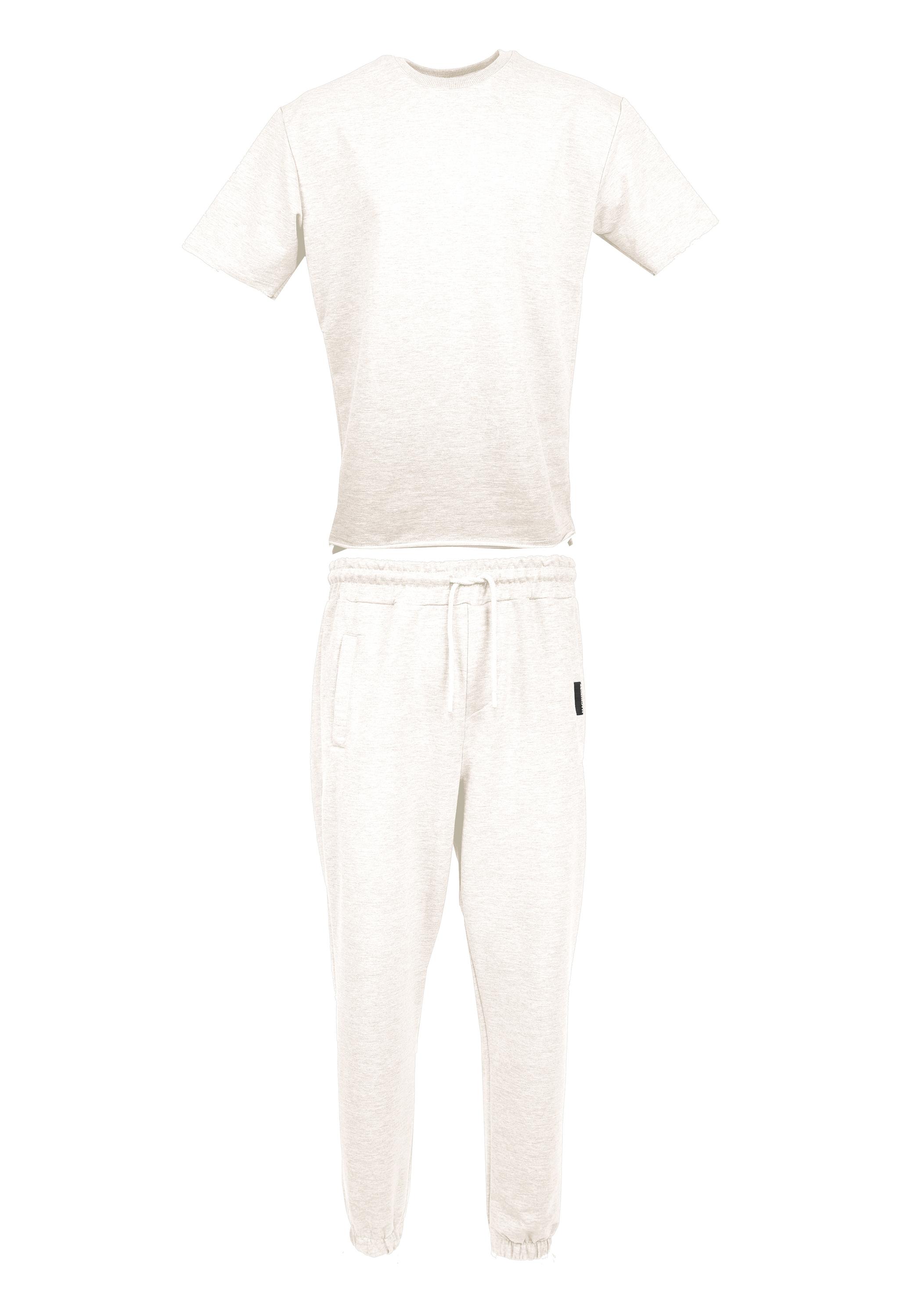 Das Set von TOM BARRON besteht aus einem lässigen Oversize-Shirt und einer passenden Jogginghose mit schmal zulaufendem Bein. Das Material liegt angenehm auf der Haut und eignet sich fürs Training oder für einen entspannten Abend auf der Couch.