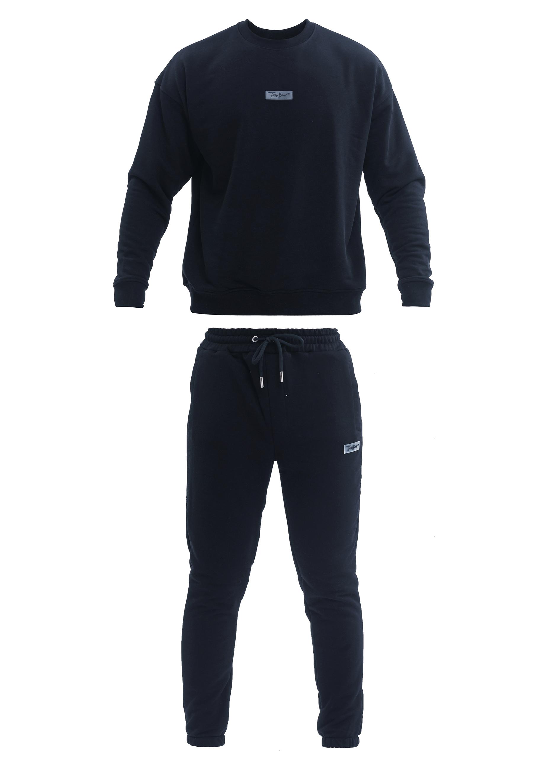 Sportlicher Freizeitanzug von TOM BARRON, bestehend aus Sweatshirt und Hose. Moderner Schnitt mit zulaufender Hose und Rppbündchen an Ärmeln und Saum. Modische Details in Form von Logoapplikationen auf Brust und Oberschenkel. Highlight ist der große Schriftzug auf dem Rücken. Sowohl zum Sport, als auch zum Entspannen auf der couch wunderbar geeinigt.