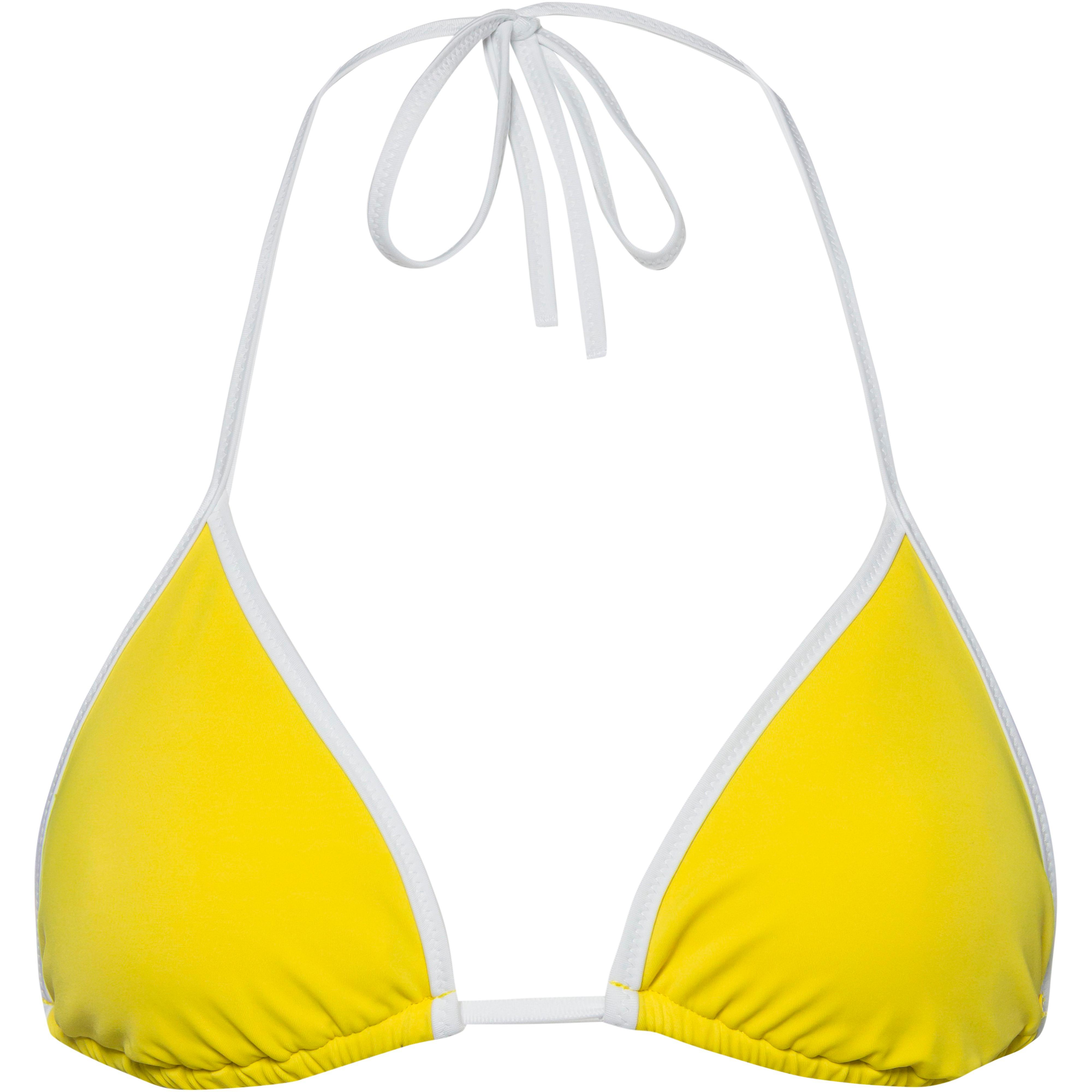 Triangel-Bikinitop aus Stretchmaterial; dünne Spaghettiträger zum Binden im Nacken und am Rücken; Cups mit herausnehmbaren Pads; Material 80% Polyamid (recycelt), 20% Elastan.