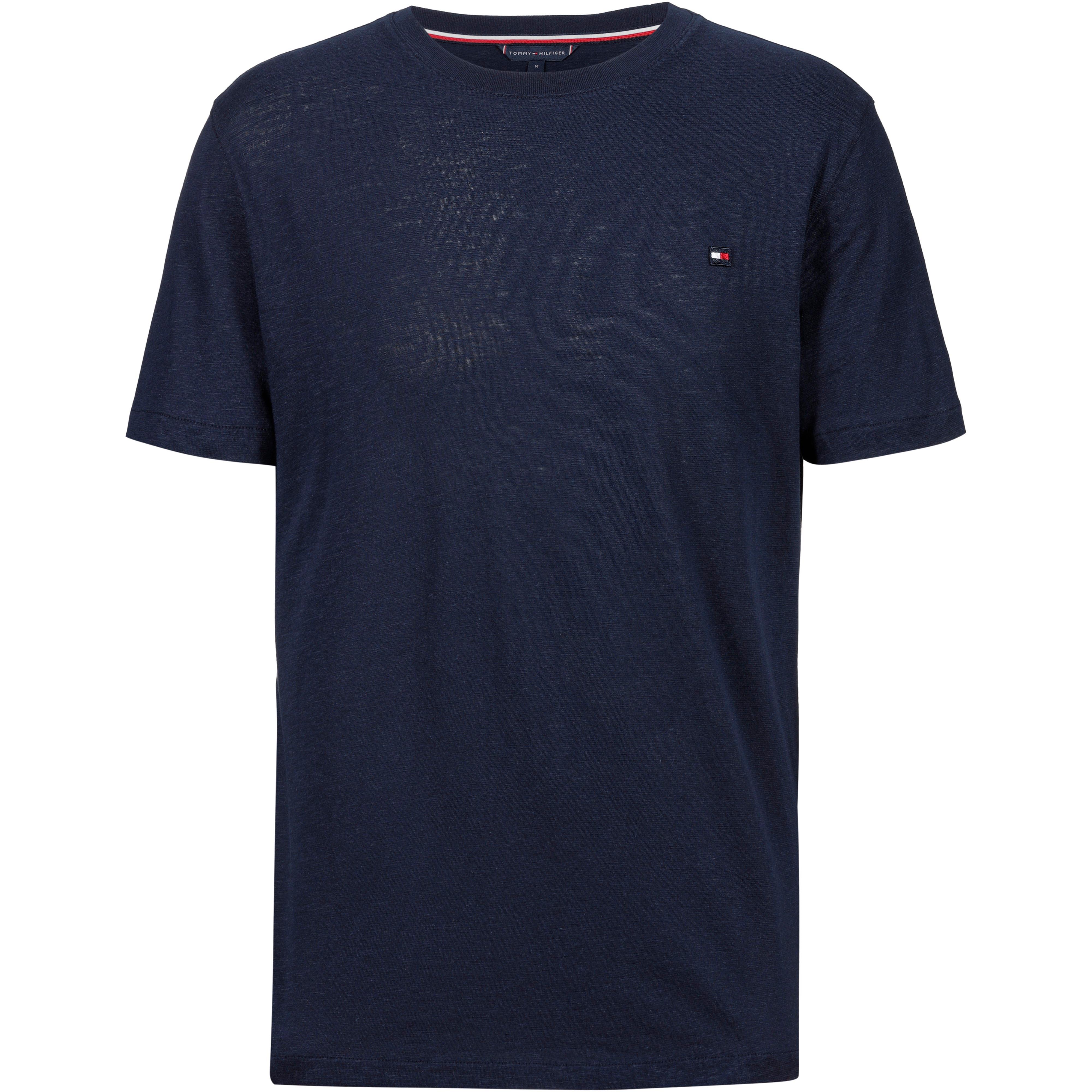 T-Shirt in schlichtem, einfarbigem Design mit kleinem Logodetail auf der Brust; gerippter Rundhalsausschnitt mit Nackenband in typischen Farben; seitlich geschlitzter Saum; normale Passform; Material 58% Baumwolle, 28% Modal, 14% Leinen.