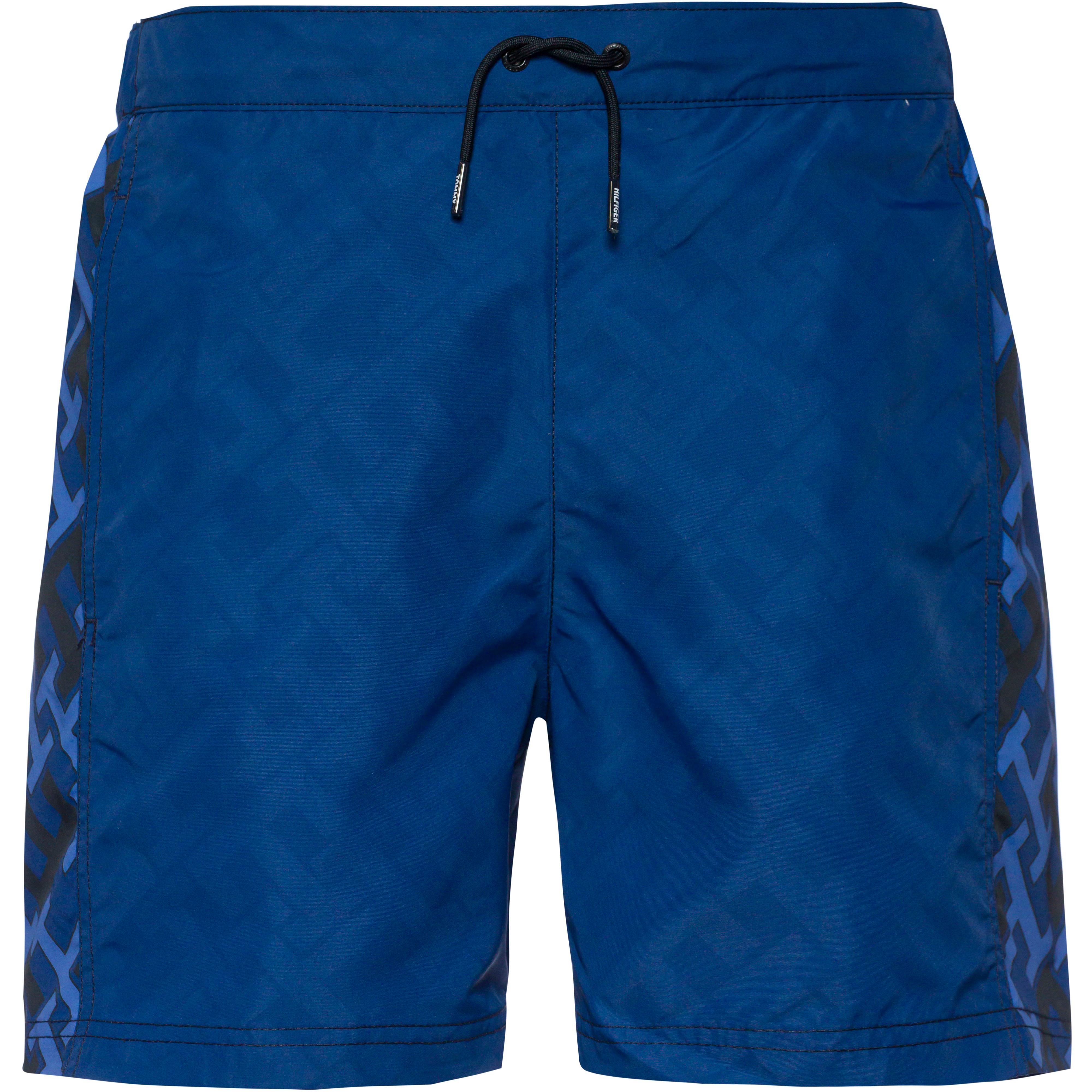 Badeshorts aus einem innovativen Stoff mit Markenprint, welcher bei Kontakt mit Wasser sichtbar wird; Bund mit Kordelzug; 2 Seitentaschen und eine Gesäßtasche; Seitenlänge: ca. 40 cm (Größe M); Material 100% Polyester (recycelt).