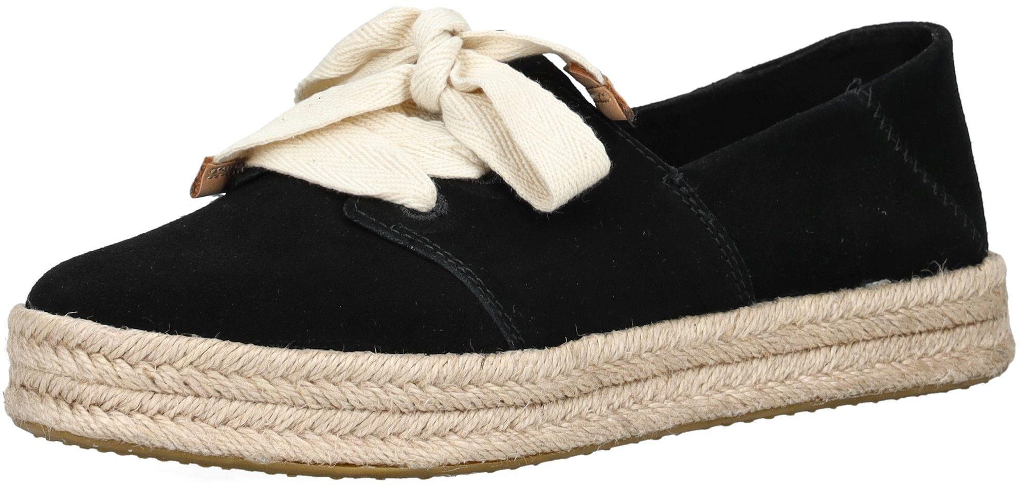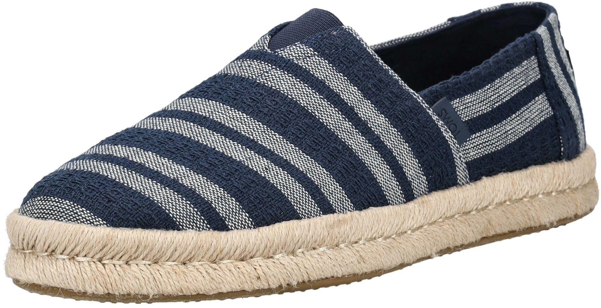 Das Sortiment für Damen von Toms bietet dir für jeden Anlass die passenden Schuhe. Zum Beispiel sportlich-elegante Damen Sneaker für einen entspannten Business Dress oder ein Treffen mit Freunden. Das weiche Obermaterial besteht aus feinem Canvas und schmiegt sich perfekt an deinen Fuß. Im Inneren sorgt eine herausnehmbare Textilsohle für ein Höchstmaß an Komfort. Sie wirkt stoßabsorbierend und dämpft deine Schritte sanft ab. Das ergibt eine deutlich reduzierte Belastung für Muskulatur und Gelenke, welche du vor allem bei langen Spaziergängen und beim Sport genießen wirst. Das Design? Angenehm schlicht und dennoch nicht langweilig. Ihre klassische Farbgebung macht die Damen Sneaker von Toms zu echten Allroundern, die du mit einem Jumpsuit ins Büro oder mit einem Top und einer Jeans in deiner privaten Freizeit trägst.