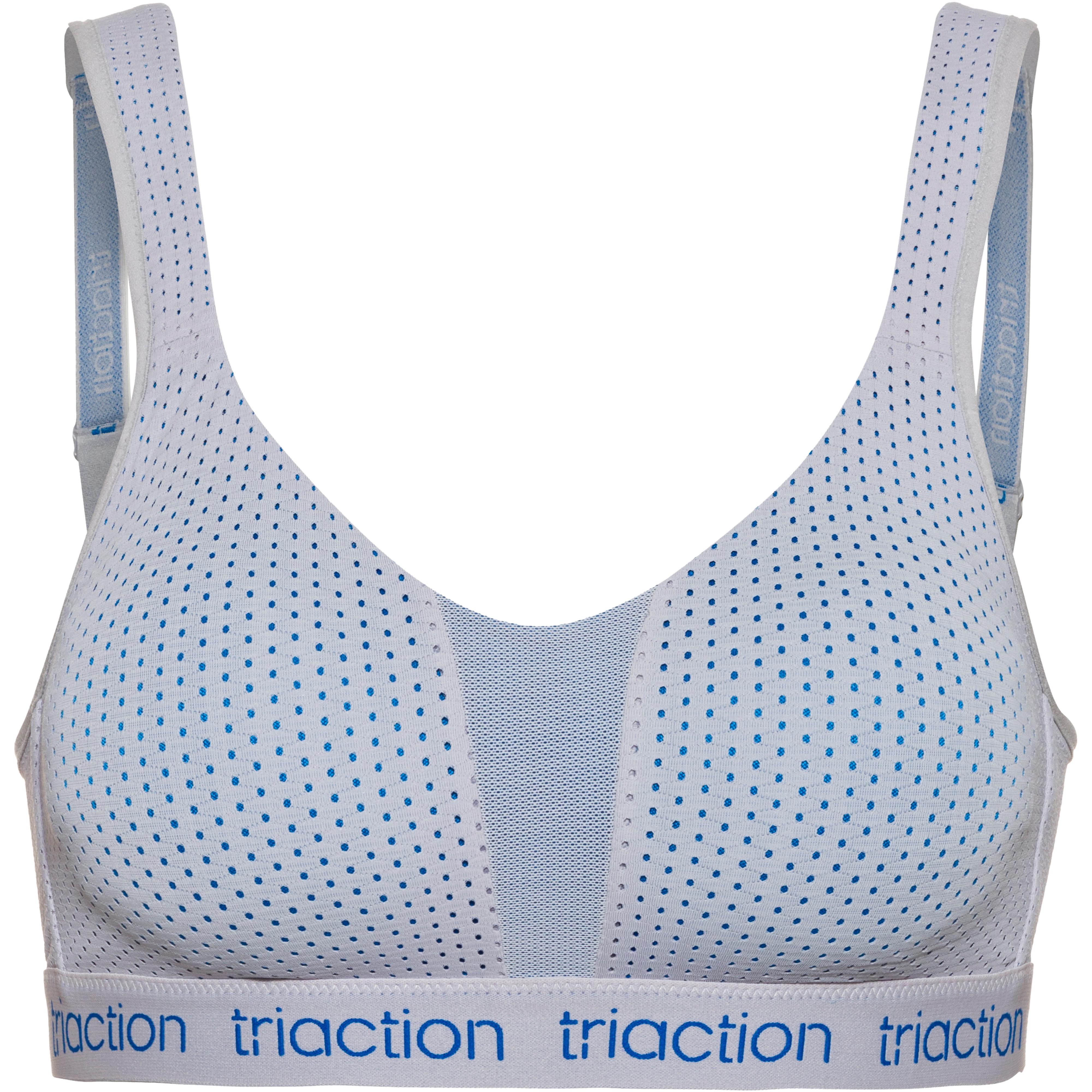 Sport-BH mit starker Stützfunktion; vorgeformte Cups; längenverstellbare Träger, welche auch über Kreuz getragen werden können; atmungsaktives und elastisches Mesh-Gewebe; elastisches Unterbrustband mit Hakenverschluss am Rücken; OEKO-TEX® Standard 100; Material 45% Polyamid, 41% Polyester, 14% Elastan.