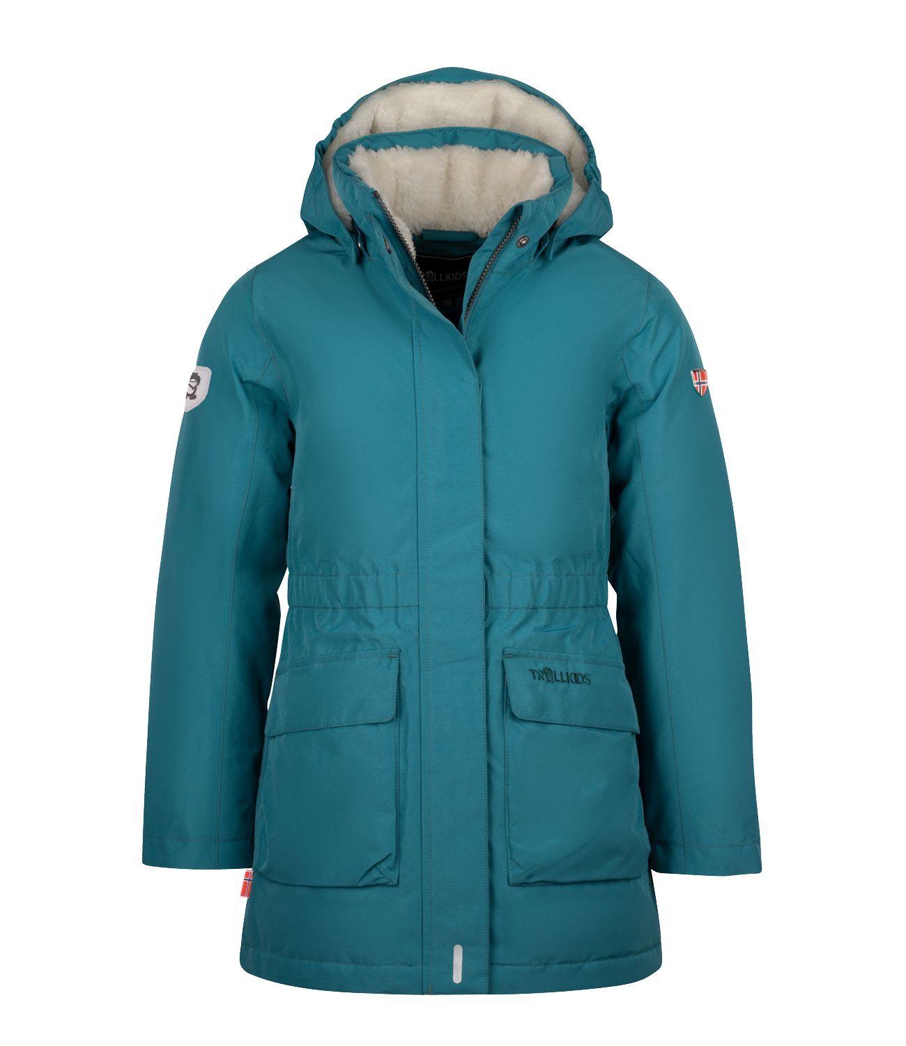 Dieser Daunenmantel hat das Zeug zum Lieblingsstück: Der GIRLS ALESUND COAT ist wasserdicht, atmungsaktiv und sehr angenehm zu tragen. Durch seine Einfarbigkeit und den klaren, längeren Schnitt passt er zu jedem Outfit und jeder Gelegenheit. Für eine schlanke Silhouette kann die Taille im Innern unsichtbar gerafft werden. Die angeschnittene Kapuze ist verstellbar und mit einem weichen Teddy-Fleece-Futter ausgestattet, ebenso wie die Innenseite des Kragens. Dank der eingearbeiteten Membran und der verschweißten Nähe ist der Mantel wasserdicht und atmungsaktiv. Die Daunenfüllung hält auch bei eisigen Temperaturen mollig warm. Ausgestattet ist der Mantel zudem mit zwei abgedeckten Hüfttaschen und einer inliegenden Brusttasche mit Reißverschluss. An den Ärmeln sorgen inliegende Strickbündchen dafür, dass kalte Luft draußen bleibt.Damit ist der GIRLS ALESUND COAT ein wahrer Allrounder und trotzt Kälte, Regen, Schnee und Wind beim Ausflug in die Natur genauso wie im Alltag in der Stadt.