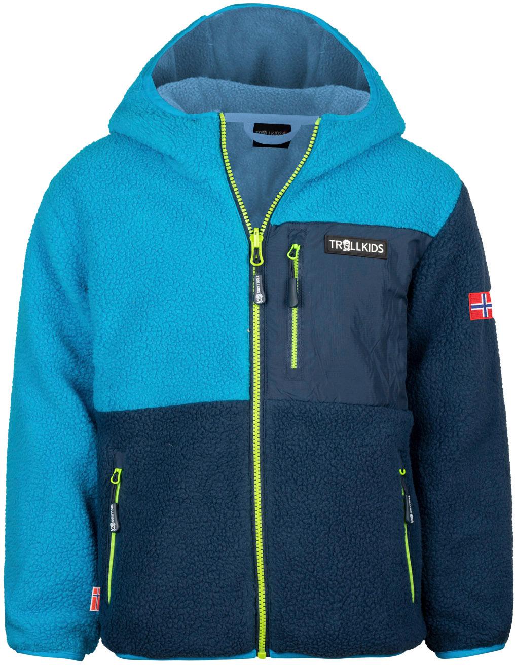 Kapuzenjacke aus kuschelig warmem Sherpa-Fleece im Colourblock-Style; durchgehender Frontreißverschluss; Brusttasche mit Reißverschluss aus glattem, kontrastierendem Material; 2 Reißverschluss-Seitentaschen; Material 100% Polyester.