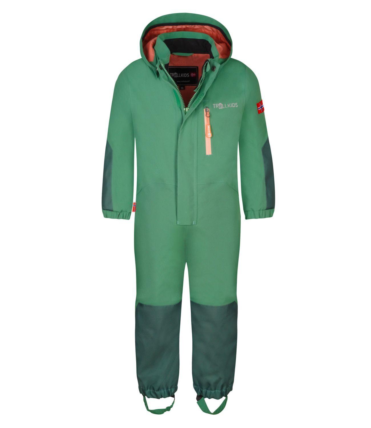 Da kommt kein Wasser rein: Der KIDS BERGEN OVERALL hat eine wasserdichte Membran und eine Windschutzleiste über dem Frontreißverschluss. Die verstellbare Kapuze ist mittels Druckknöpfe abnehmbar und liegt durch einen inliegenden Elastik-Einsatz eng am Kopf an. Abnehmbare Fußschlaufen halten die Hosenbeine zuverlässig über den Schuhen, so dass Wasser zuverlässig draußen bleibt. Für die notwendige Robustheit beim Spielen und Toben sorgen Verstärkungen im Ellenbogen-, Knie- und Gesäßbereich. Eine Raffung hinten an der Taille sorgt für den guten Sitz des Overalls, und reflektierende Details erhöhen die Sichtbarkeit. In der Brusttasche mit Reißverschluss können Kleinigkeiten sicher verstaut werden. Gewicht: 430 g (Größe: 128).