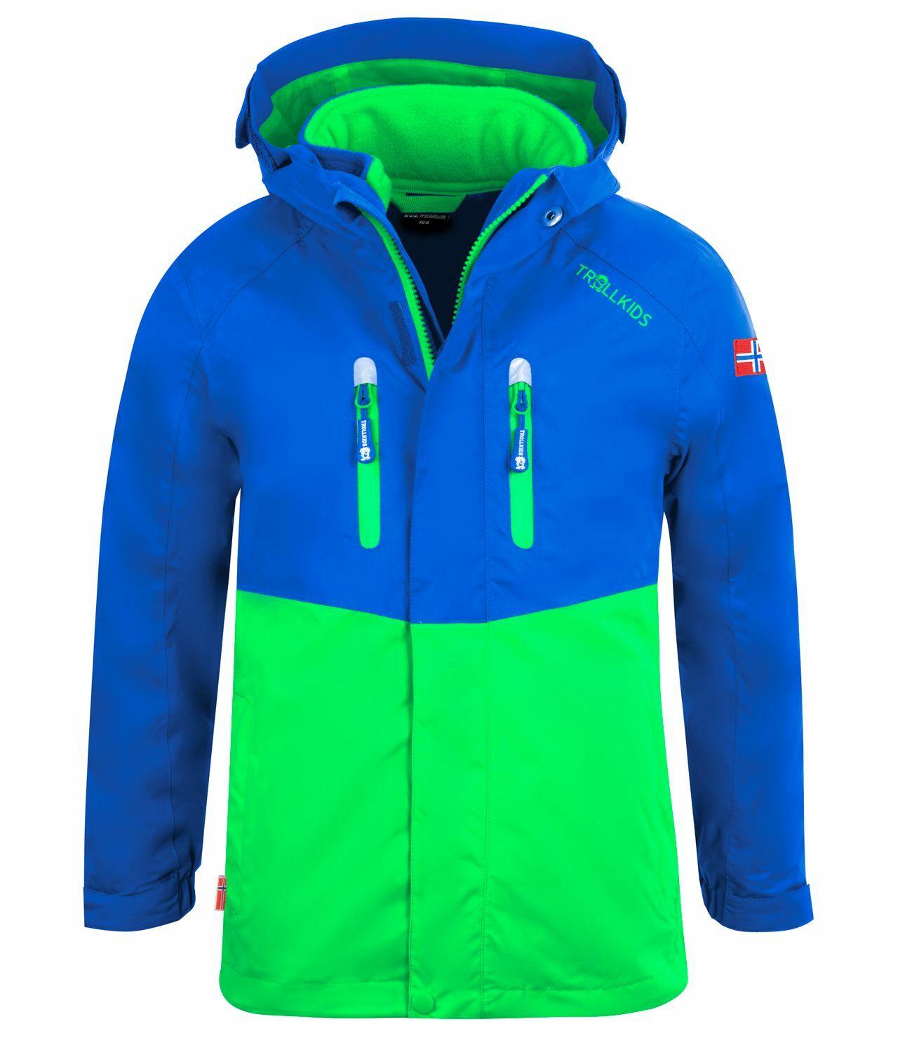 Die zweifarbige Doppeljacke ist wasserdicht, winddicht und atmungsaktiv. In Kombination mit der weichen und pflegeleichten Fleece-Innenjacke, die auch solo getragen werden kann, bietet sie hundertprozentigen Kälte- und Wetterschutz für das ganze Jahr.Die Außenjacke mit einer angeschnittenen, in der Weite regulierbaren Kapuze ist sehr angenehm im Griff. Sie ist mit zwei Brusttaschen und zwei Hüfttaschen ausgestattet, die wasserdicht verarbeitet sind so dass keine Feuchtigkeit durchdringen kann. Auch der Frontreißverschluss ist mit einer Flap für zusätzlichen Wetterschutz abgedeckt. Das 2-Lagen-Material hat eine Wassersäule von 6000mm/m², die Atmungsaktivität beträgt 6000g/m²/24h. Gegen Wind und Feuchtigkeit schützen Klettverschlüsse an den Ärmelbündchen und ein Gummizug am Saum. Die reflektierenden Elemente vorne und hinten sorgen für eine gute Sichtbarkeit bei Dämmerung.