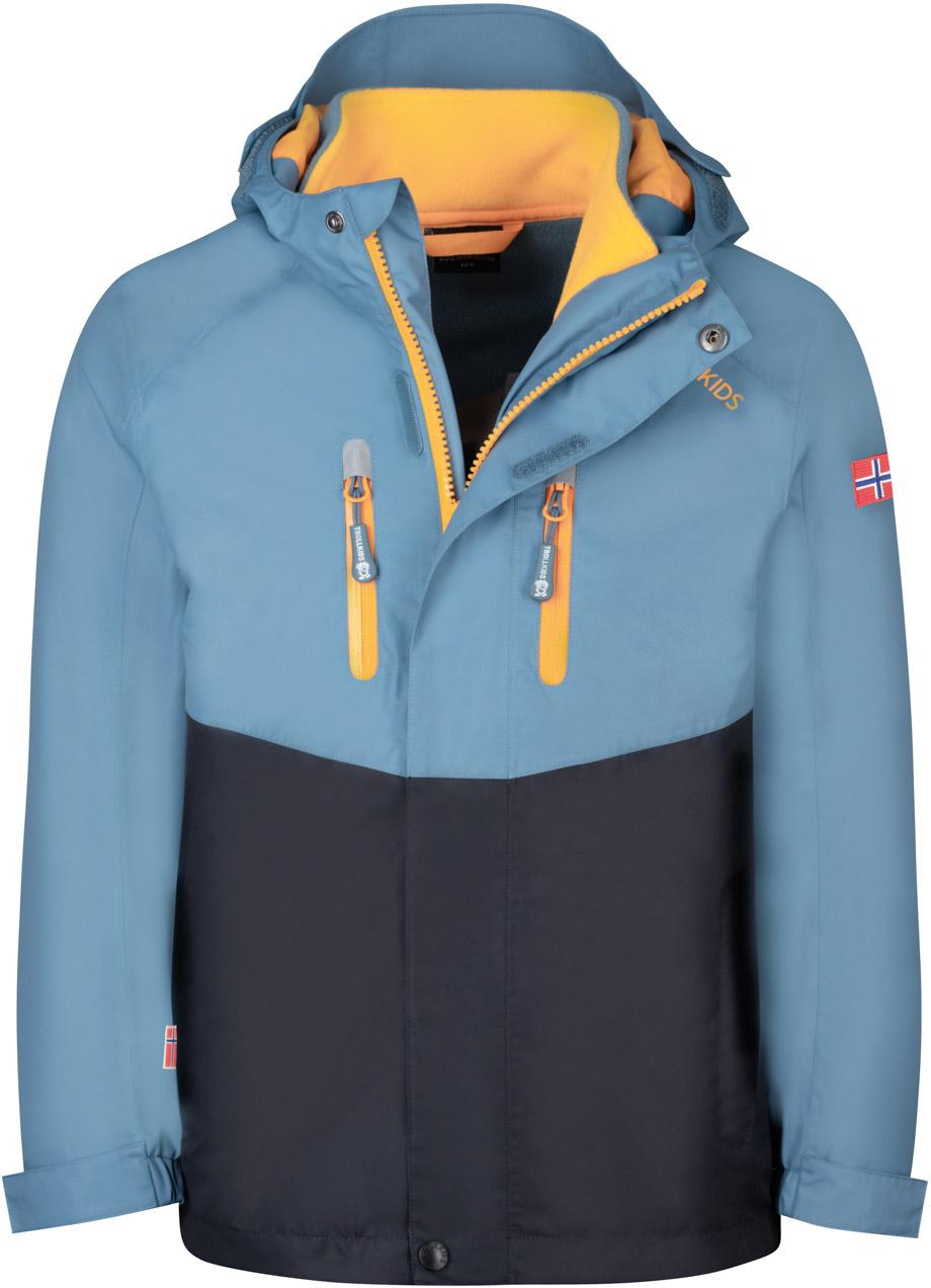 3in1-Jacke für 4 Jahreszeiten; wasser- und winddichte sowie atmungsaktive Außenjacke aus 2 Lagen mit Aquaproof-Membran; mit weitenregulierbarer Kapuze; jeweils 2 Reißverschlusstaschen an Brust und Hüfte; Frontreißverschluss mit Windschutzleiste; Ärmelbündchen mit Klettriegeln; Saum mit Tunnelzug; reflektierende Elemente; Wassersäule: 6000 mm; wärmende Fleece-Innenjacke mit Stehkragen und 2 Reißverschlusstaschen; Innen- und Außenjacke können einzeln getragen werden; Material I 100% Polyester; Material II 100% Polyester.