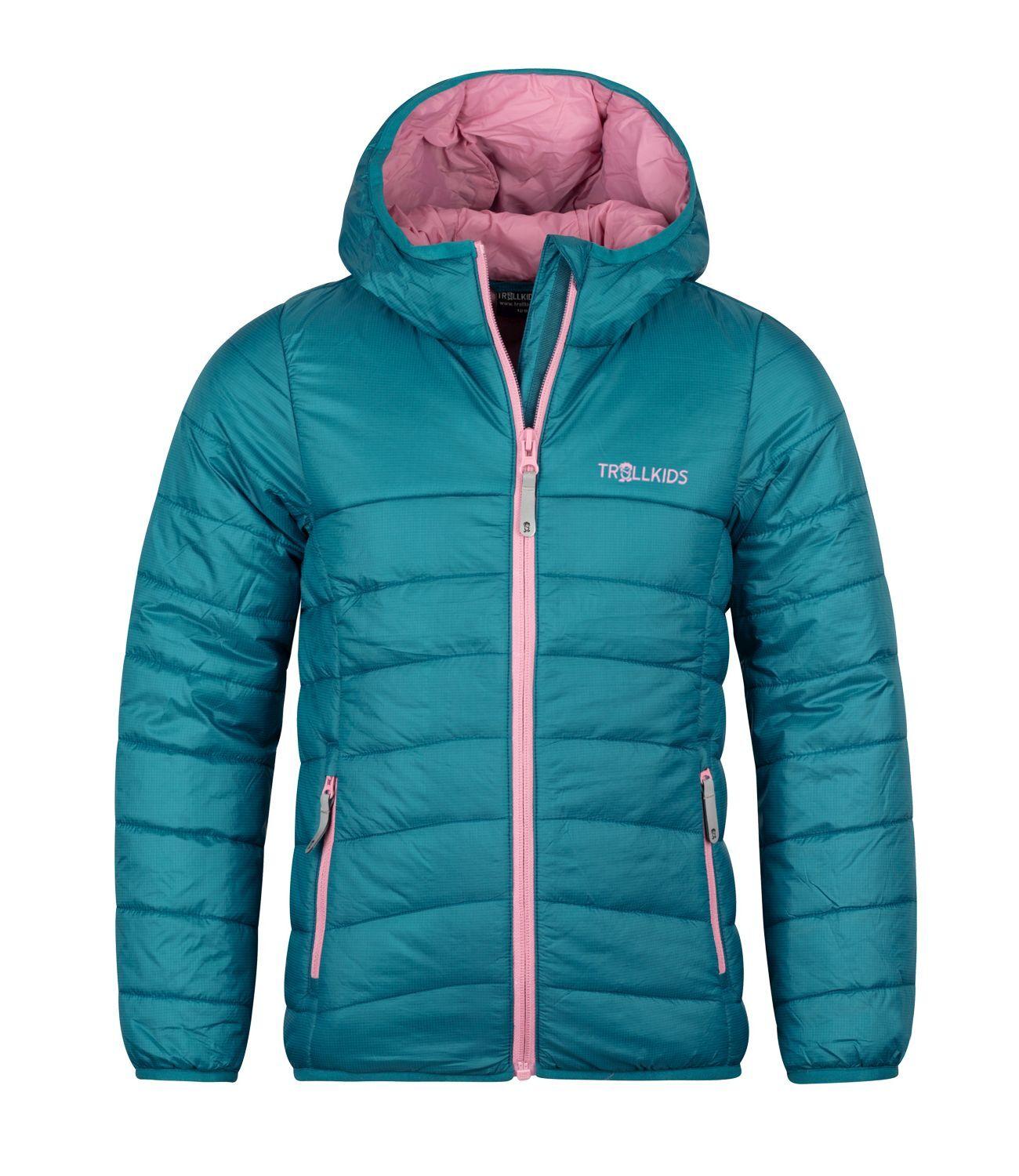 Ultraleicht, vielseitig, klein zusammenpackbar: Das ist die GIRLS EIKEFJORD JACKET. Die leicht wattierte Steppjacke mit kontrastfarbenen Reißverschlüssen und einer angeschnittenen Kapuze, deren Futter ebenfalls kontrastfarben ist, ist schnell übergezogen und wärmt an kühleren Tagen, ist aber auch ideal als Schicht unter einer regendichten Jacke. Zwei seitliche Taschen mit Reißverschluss sorgen dafür, dass Kleinigkeiten sicher verstaut werden können. Problemlos waschbar und damit extrem pflegeleicht wird die Jacke zum einen durch ihr Ripstop-Material, zum anderen durch die Wattierung aus Polyfill. Zudem ist die GIRLS EIKEFJORD JACKET auch klein zusammenpackbar und verschwindet dann im in der Tasche integrierten Packbeutel (Packaway Pocket). Und, last but not least: Aus recyceltem Polyester hergestellt, beruhigt sie das Umwelt-Gewissen. Gewicht: 250 g (Größe 128).