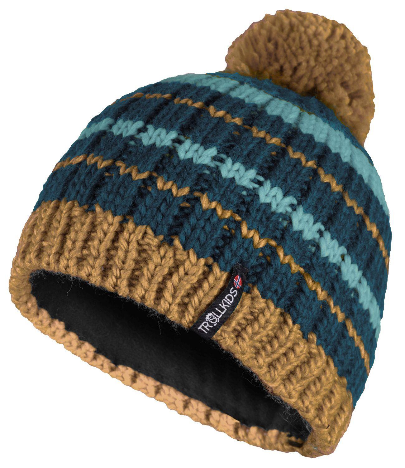 Trollkids Hafjell Bommelmütze Kinder Blaugrün/Wasserblau/Honig