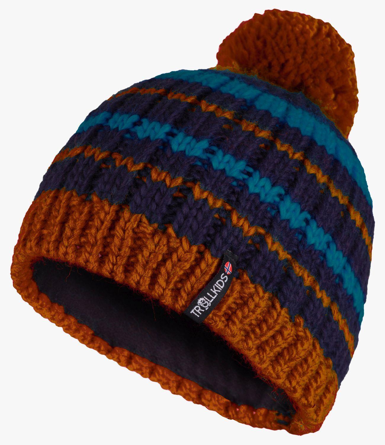 Trollkids Hafjell Bommelmütze Kinder Nachtblau/Dunkelblau/Zimt