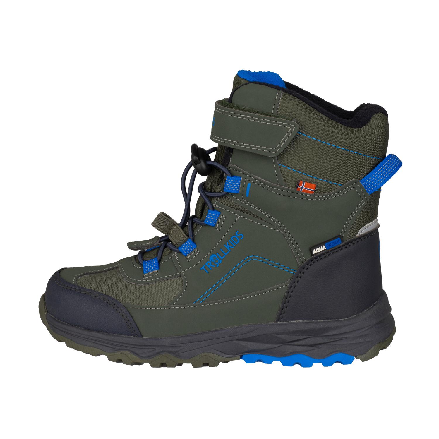 Wahre Alleskönner im Winter sind die knöchelhohen KIDS HAFJELL WINTER BOOTS XT: Wasserdicht und sehr robust, trotzen diese Stiefel selbst dem schlimmsten Schneematsch. Im Innern hält ein kuscheliges Fleecefutter die Füße schön warm. Der verstärkte Zehenbereich erhöht die Robustheit zusätzlich. Dank des Reißverschlusses und der beiden Klettverschlüsse ist der Schuh blitzschnell an- und ausgezogen. Zusätzliches Plus sind die herausnehmbare Innensohle sowie reflektierende Elemente.