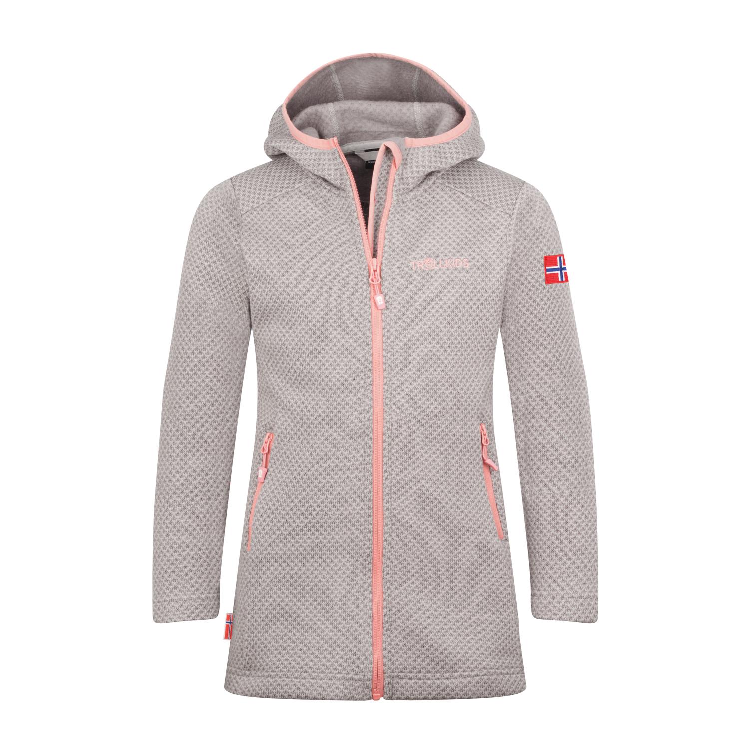 Der GIRLS JONDALEN COAT ist ein Mantel aus warmem Strickfleece im charakteristischen, Swiss-Check-Muster. Für das Plus an Kuscheligkeit und Wärme ist die Innenseite aufgeraut. Der Mantel hat zwei praktische Reißverschlusstaschen. Die Kapuze ist elastisch eingefasst.