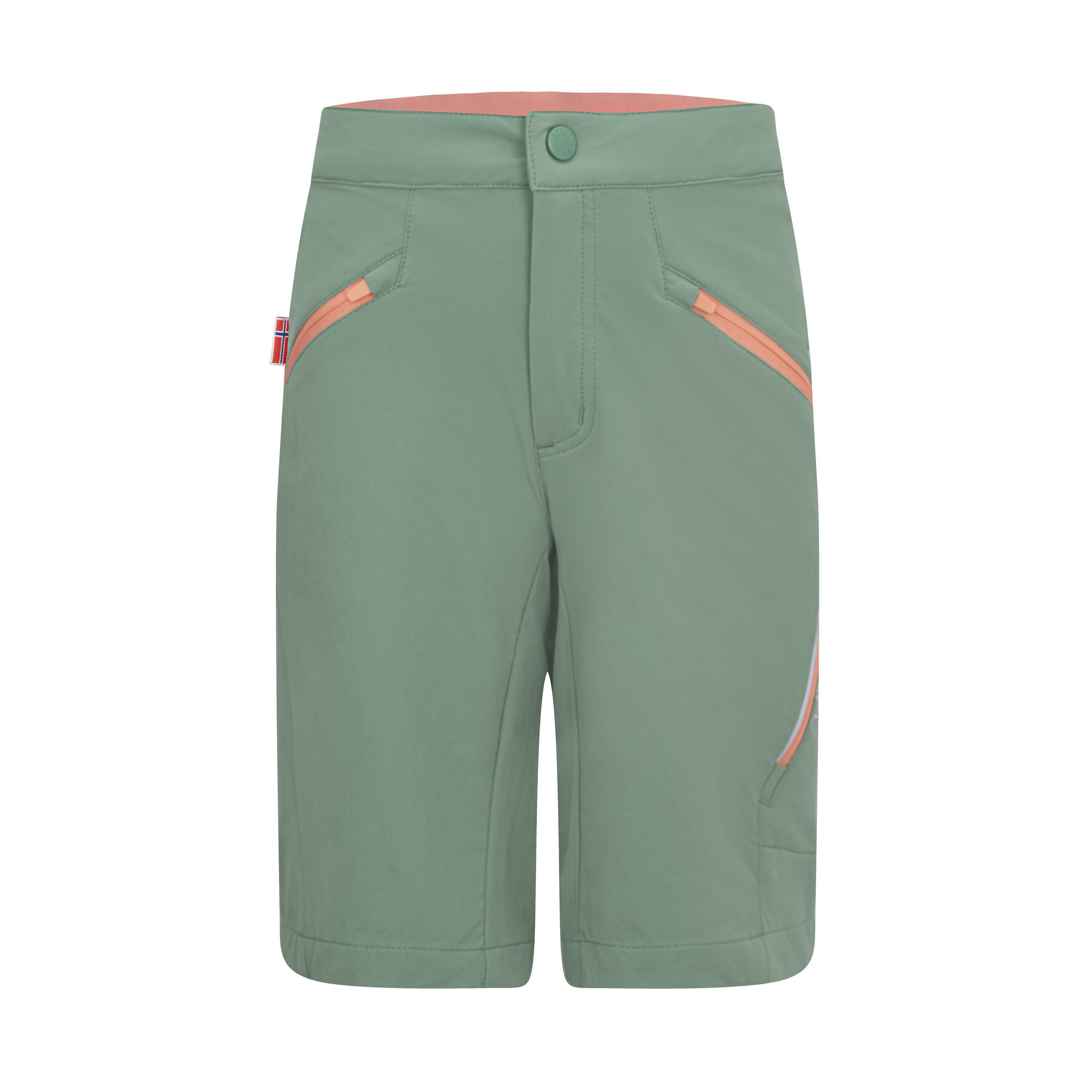 Speziell zum Radfahren vor allem zum Mountainbiken hat TROLLKIDS die KIDS JONDALEN 2in1 PANTS entwickelt: Die kurze Hose ist mit einer herausnehmbaren, leichten Innenhose aus Mesh mit Sitzpolster im Schritt ausgestattet. Diese kann mit Schlaufen in der Überhose befestigt werden. Der Bund der Überhose kann in der Weite reguliert werden und hat Gürtelschlaufen. Praktisch: eine Tasche auf dem Oberschenkel sowie zwei seitliche Taschen, alle mit Reißverschluss, wobei der Reißverschluss an der Oberschenkeltasche mit einer reflektierenden Einfassung versehen ist. Innen- und Überhose sind aus elastischem Material und so geschnitten, dass sie die fürs Radfahren notwendige Bewegungsfreiheit garantieren. Gewicht: 240 g (Größe 128).