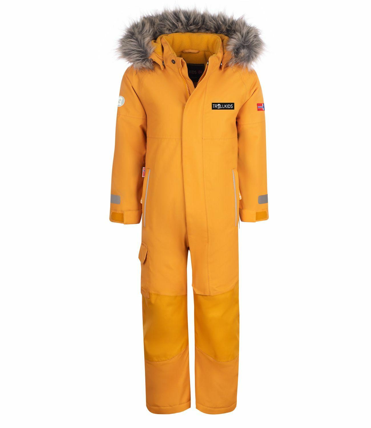 Der einfarbig gehaltene KIDS KIRKENES SNOWSUIT verbindet im winterlichen Alltag zuverlässige Wärmeleistung mit der nötigen Robustheit und schlichtem, aber ansprechendem Design: Im Innern sorgt ein Futter aus kuscheligem Fleecestoff für wohlige Wärme. An den besonders beanspruchten Stellen wie Knien und Gesäß ist der Overall mit widerstandsfähigem Ripstop-Gewebe verstärkt. Praktische Details sind die beiden Reißverschlusstaschen, inliegende Strick-Ärmelbündchen, weitenregulierbare Ärmelabschlüsse sowie abnehmbare Fußschlaufen, die die Hosenbeine am Hochrutschen hindern. Die abnehmbare und verstellbare Kapuze mit Fleece-Innenfutter hat einen Kunstfellrand, der ebenfalls abgenommen werden kann. Reflektierende Details sorgen für bessere Sichtbarkeit.