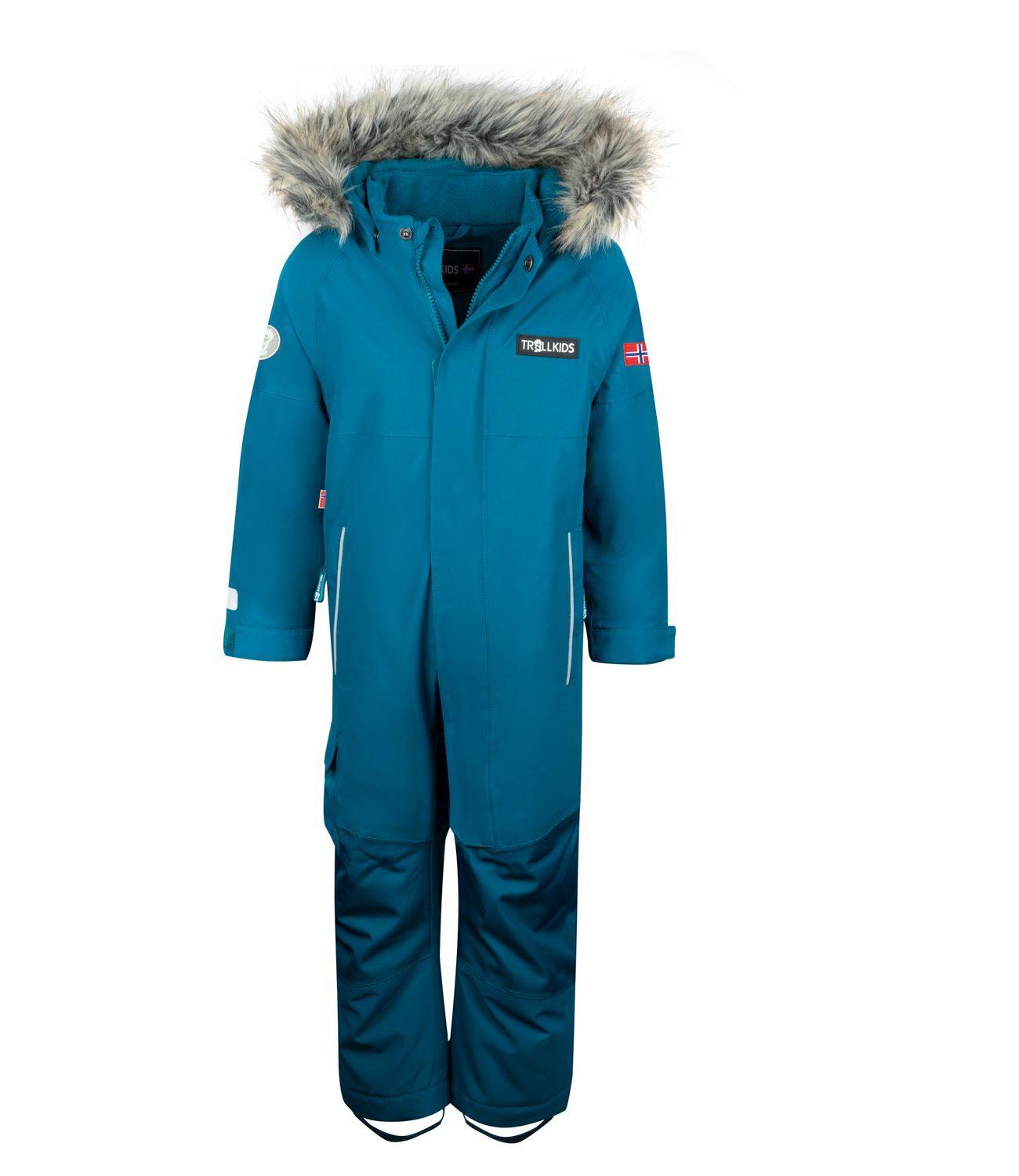 Der einfarbig gehaltene KIDS KIRKENES SNOWSUIT verbindet im winterlichen Alltag zuverlässige Wärmeleistung mit der nötigen Robustheit und schlichtem, aber ansprechendem Design: Im Innern sorgt ein Futter aus kuscheligem Fleecestoff für wohlige Wärme. An den besonders beanspruchten Stellen wie Knien und Gesäß ist der Overall mit widerstandsfähigem Ripstop-Gewebe verstärkt. Praktische Details sind die beiden Reißverschlusstaschen, inliegende Strick-Ärmelbündchen, weitenregulierbare Ärmelabschlüsse sowie abnehmbare Fußschlaufen, die die Hosenbeine am Hochrutschen hindern. Die abnehmbare und verstellbare Kapuze mit Fleece-Innenfutter hat einen Kunstfellrand, der ebenfalls abgenommen werden kann. Reflektierende Details sorgen für bessere Sichtbarkeit.