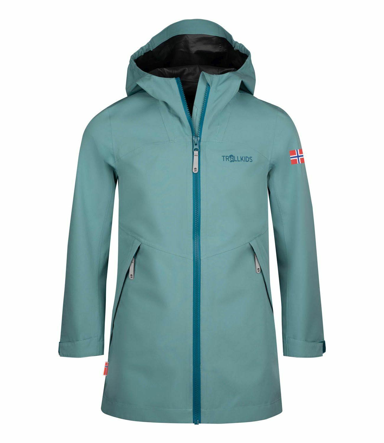 Keine Scheu vor Regentagen – dank des leichten, superdichten 2,5-Lagen-Regenmantels GIRLS LILLEHAMMER COAT mit seinem längeren Schnitt. Die wasserdichte Membran ist direkt mit dem Oberstoff verbunden und zum Jackeninnern hin noch einmal beschichtet. Kapuze und Ärmelbündchen sind in der Weite verstellbar. In den beiden schräg angesetzten Fronttaschen lassen sich Kleinigkeiten sicher verstauen. Das geradlinige, einfarbige Design erfrischen Reißverschlüssen in Kontrastfarben. Gewicht: 220 g (Größe 128). Material: 2,5 Lagen Material | Außenmaterial: 100 % Polyester | Beschichtung Außenmaterial: 100 % Polyester | Membran: 100 % TPU | Wassersäule: 6.000 mm; Atmungsaktivität: 6.000 g/m²/24h.