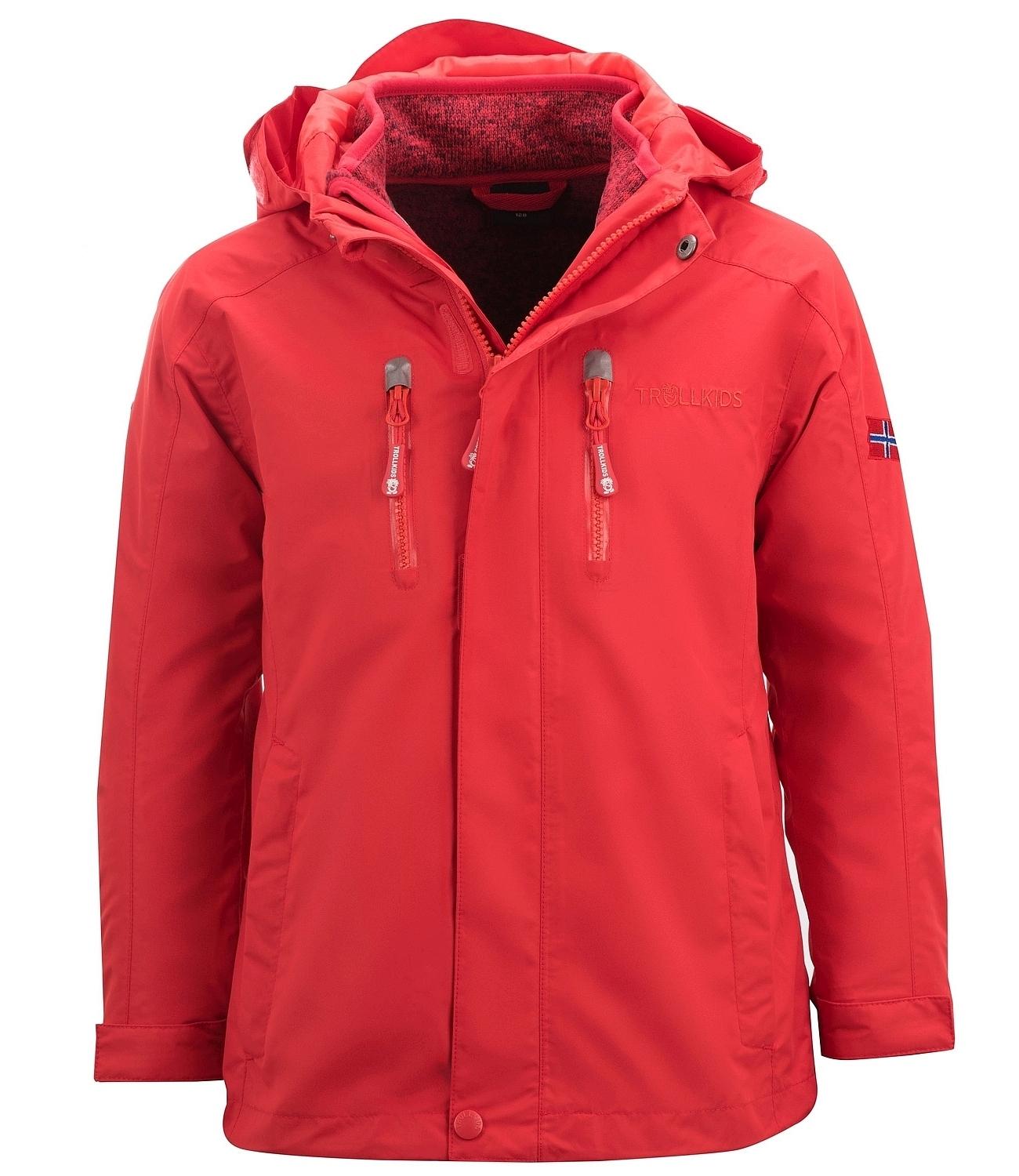 Wasserdichte, winddichte und atmungsaktive 3in1-Funktionsjacke, die das ganze Jahr über getragen werden kann: Die Außenjacke mit Kapuze schützt zuverlässig vor Wind und Wetter, in Kombination mit der Fleece-Innenjacke (Kids Jondalen Jacket) wird die Körperwärme optimal gespeichert. Beide Jacken können auch in den Übergangszeiten und im Sommer einzeln getragen werden. Die Wassersäule der Außenjacke beträgt 6000mm/m², die Atmungsaktivität 6000g/m²/24h, die Nähte sind isoliert. Außenjacke: ausgestattet mit wasserdichten Reißverschlüssen an den Brusttaschen und Reflektoren vorne und hinten. Außerdem verfügt die regensichere Außenjacke über eine verstellbare Kapuze. Klettverschlüsse an den Armen sorgen dafür, dass die Ärmellänge angepasst werden kann und kein Wind durch die Bündchen dringt. Material: Außere Jacke: 100 % Polyester | Innere Jacke: Fleece 280 g/m² (100 % Polyester) | Wassersäule: 6.000 mm | Atmungsaktivität: 6.000 g/m²/24h.
