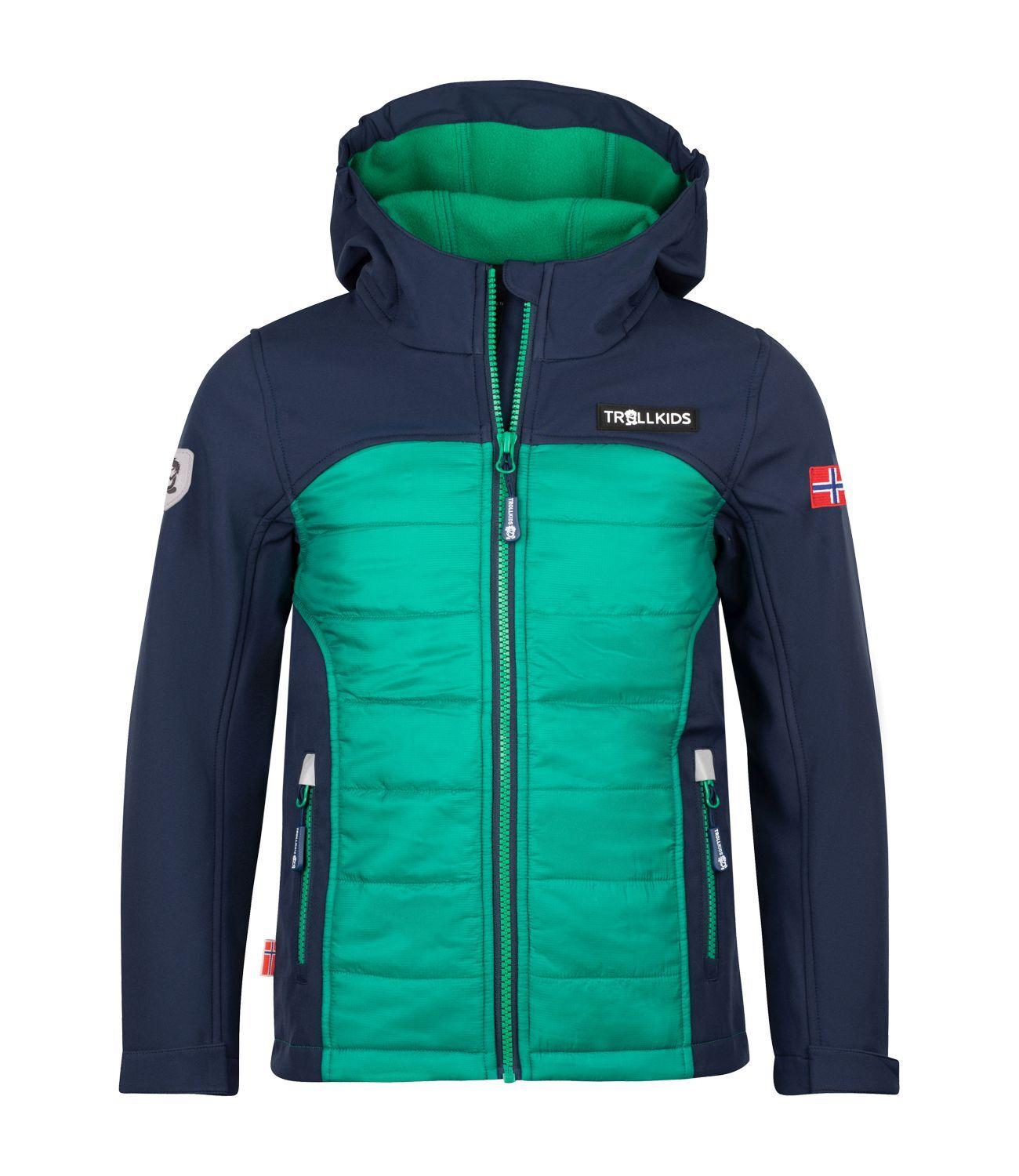Diese Jacke ist ein Alleskönner. Sie wärmt durch leichte hochisolierende Polyfaserfüllung am Rumpf und liefert gleichzeitig Abriebschutz, Schutz vor Regen und Bewegungsfreiheit an Armen und Schultern. Diese Multifunktionalität (Body Mapping) wird durch die Kombination von zwei Stoffen mit verschiedenen Eigenschaften erreicht: An Armen, Schultern und Kapuze wird ein Stretch Softshell Polyester verwendet, das wasserabweisend, winddicht, hochelastisch und abriebfest ist. Am Rumpf, dort wo Wärme besonders benötigt wird und weniger Regen hinkommt, wird eine reißfester, gefütterter Polyester Stoff mit Rip Stop Architektur eingesetzt. Beide Stoffe sind schnelltrocknend. Die Jacke eignet sich besonders für die Übergangszeit und ist aufgrund ihrer Leichtigkeit und Bewegungsfreiheit verleihenden Stretch Eigenschaften sehr beliebt. Sie verfügt über Reißverschlüsse an den Hüfttaschen und Reflektoren vorne und hinten. Gewicht: 350 g (Größe 128). Material: 100 % Polyester.