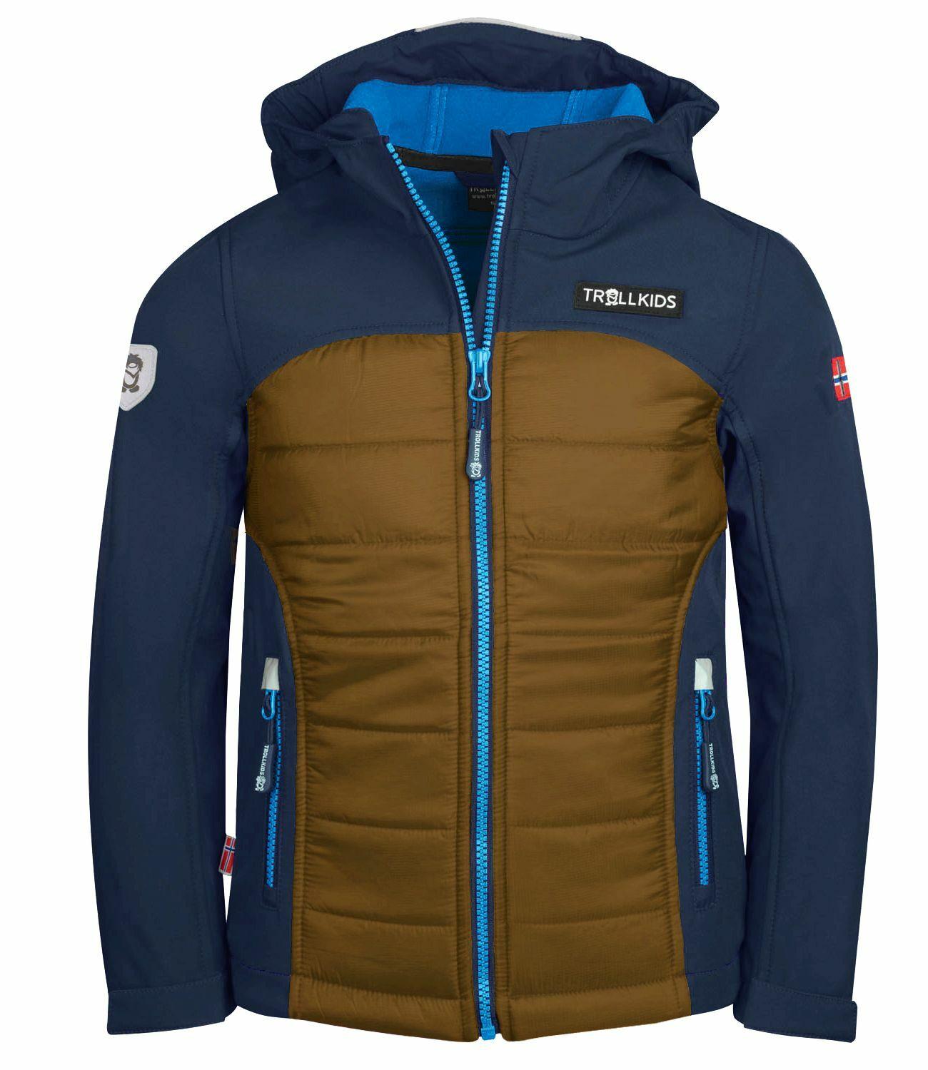 Diese Jacke ist ein Alleskönner. Sie wärmt durch leichte hochisolierende Polyfaserfüllung am Rumpf und liefert gleichzeitig Abriebschutz, Schutz vor Regen und Bewegungsfreiheit an Armen und Schultern. Diese Multifunktionalität (Body Mapping) wird durch die Kombination von zwei Stoffen mit verschiedenen Eigenschaften erreicht: An Armen, Schultern und Kapuze wird ein Stretch Softshell Polyester verwendet, das wasserabweisend, winddicht, hochelastisch und abriebfest ist. Am Rumpf, dort wo Wärme besonders benötigt wird und weniger Regen hinkommt, wird eine reißfester, gefütterter Polyester Stoff mit Rip Stop Architektur eingesetzt. Beide Stoffe sind schnelltrocknend. Die Jacke eignet sich besonders für die Übergangszeit und ist aufgrund ihrer Leichtigkeit und Bewegungsfreiheit verleihenden Stretch Eigenschaften sehr beliebt. Sie verfügt über Reißverschlüsse an den Hüfttaschen und Reflektoren vorne und hinten. Gewicht: 350 g (Größe 128). Material: 100 % Polyester.