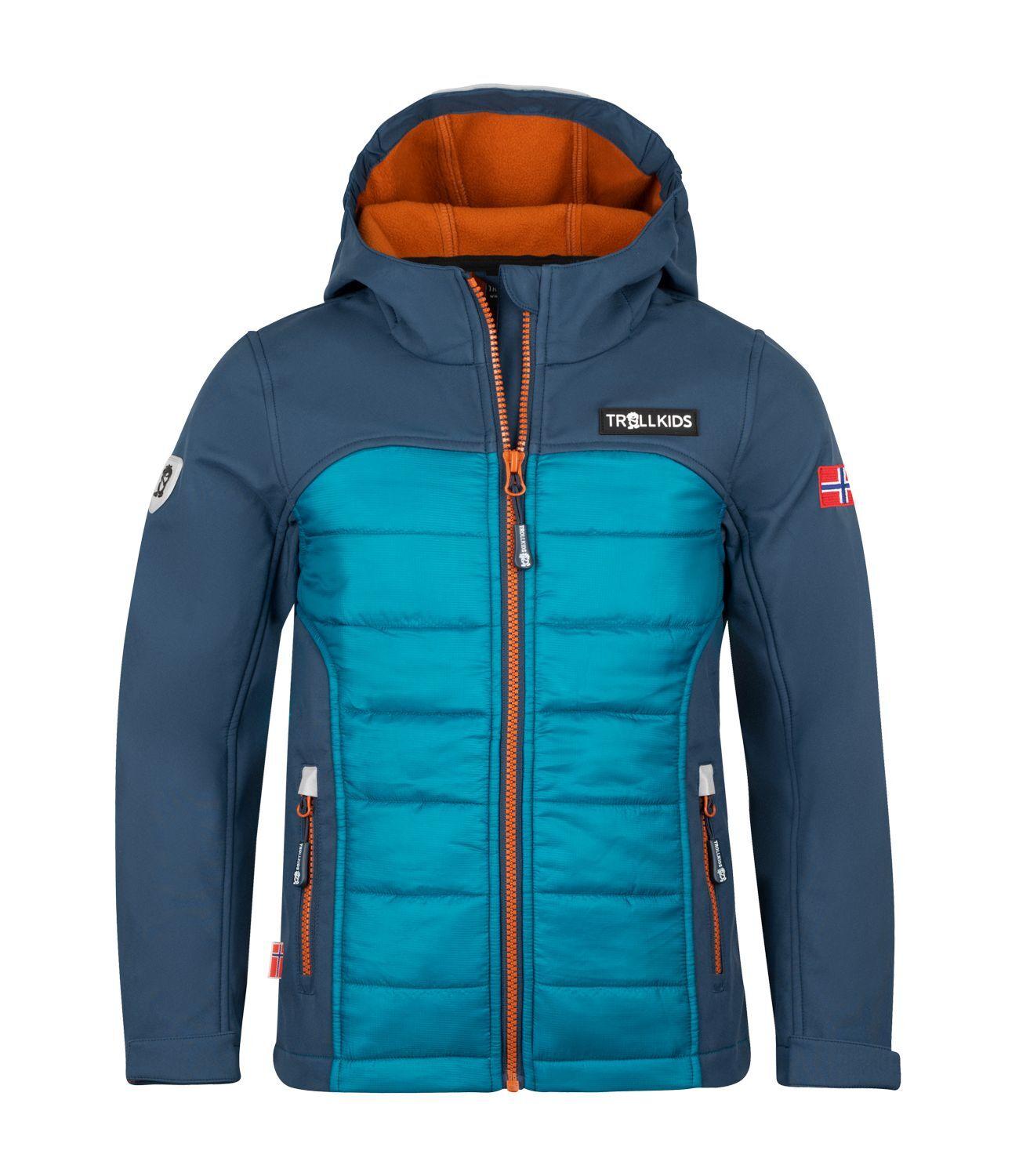 Diese Jacke ist ein Alleskönner. Sie wärmt durch leichte hochisolierende Polyfaserfüllung am Rumpf und liefert gleichzeitig Abriebschutz, Schutz vor Regen und Bewegungsfreiheit an Armen und Schultern. Diese Multifunktionalität (Body Mapping) wird durch die Kombination von zwei Stoffen mit verschiedenen Eigenschaften erreicht: An Armen, Schultern und Kapuze wird ein Stretch Softshell Polyester verwendet, das wasserabweisend, winddicht, hochelastisch und abriebfest ist. Am Rumpf, dort wo Wärme besonders benötigt wird und weniger Regen hinkommt, wird eine reißfester, gefütterter Polyester Stoff mit Rip Stop Architektur eingesetzt. Beide Stoffe sind schnelltrocknend. Die Jacke eignet sich besonders für die Übergangszeit und ist aufgrund ihrer Leichtigkeit und Bewegungsfreiheit verleihenden Stretch Eigenschaften sehr beliebt. Sie verfügt über Reißverschlüsse an den Hüfttaschen und Reflektoren vorne und hinten. Gewicht: 350 g (Größe 128). Material: 100 % Polyester.