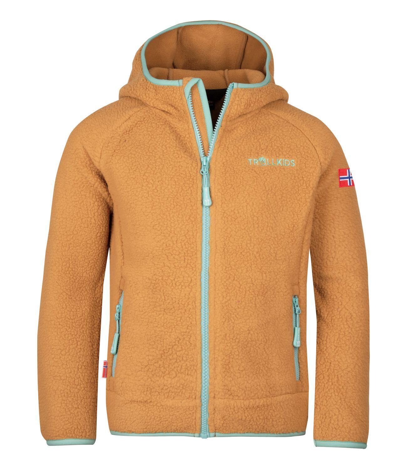 Mit dem GIRLS MANDAL JACKET bringt TROLLKIDS erstmals eine Jacke aus Teddy-Fleece auf den Markt - aber nicht irgendeine, sondern eine richtig hochwertige: Das recycelte "Sherpa-Fleece" hat die wärmende 300 g/m² Qualität und ist auch auf der Innenseite der Jacke hochflorig und damit sehr kuschelig zu tragen. Die Jacke hat eine feste Kapuze sowie zwei praktische seitliche Reißverschlusstaschen. Schönes Detail sind die farblich abgesetzten, elastischen Saumeinfassungen.