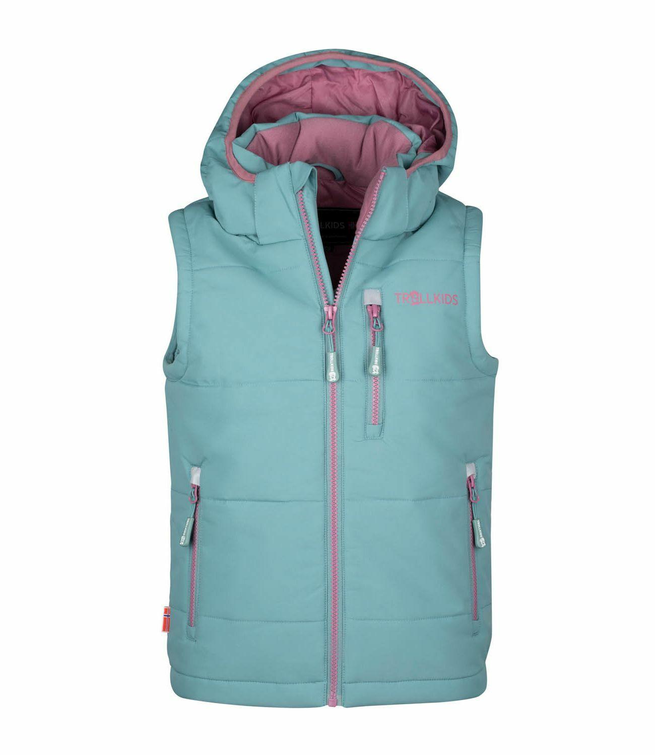 Die Neuauflage der beliebten KIDS NARVIK VEST XT ist aus dem robusten Ripstop-Stoff gefertigt, der sich schon in vielen anderen Trollkids-Produkten bewährt hat. Die vielseitige, warme Weste ist mit Polyfasern gefüttert, winddicht und wasserabweisend ideal für aktive Kids im Frühjahr/Herbst bzw. in den Bergen oder an der See, wo das Wetter schnell umschlagen kann. Die Kunstfaser-Füllung wärmt im Gegensatz zur Daune auch bei Nässe und kann jederzeit problemlos in der Waschmaschine gewaschen werden. Die gefütterte Kapuze ist abnehmbar, die Armöffnungen sind zusätzlich gegen Wind geschützt, und insgesamt drei Reißverschlusstaschen fassen sicher alle Kleinigkeiten. Gewicht: 440 g (Größe 128).