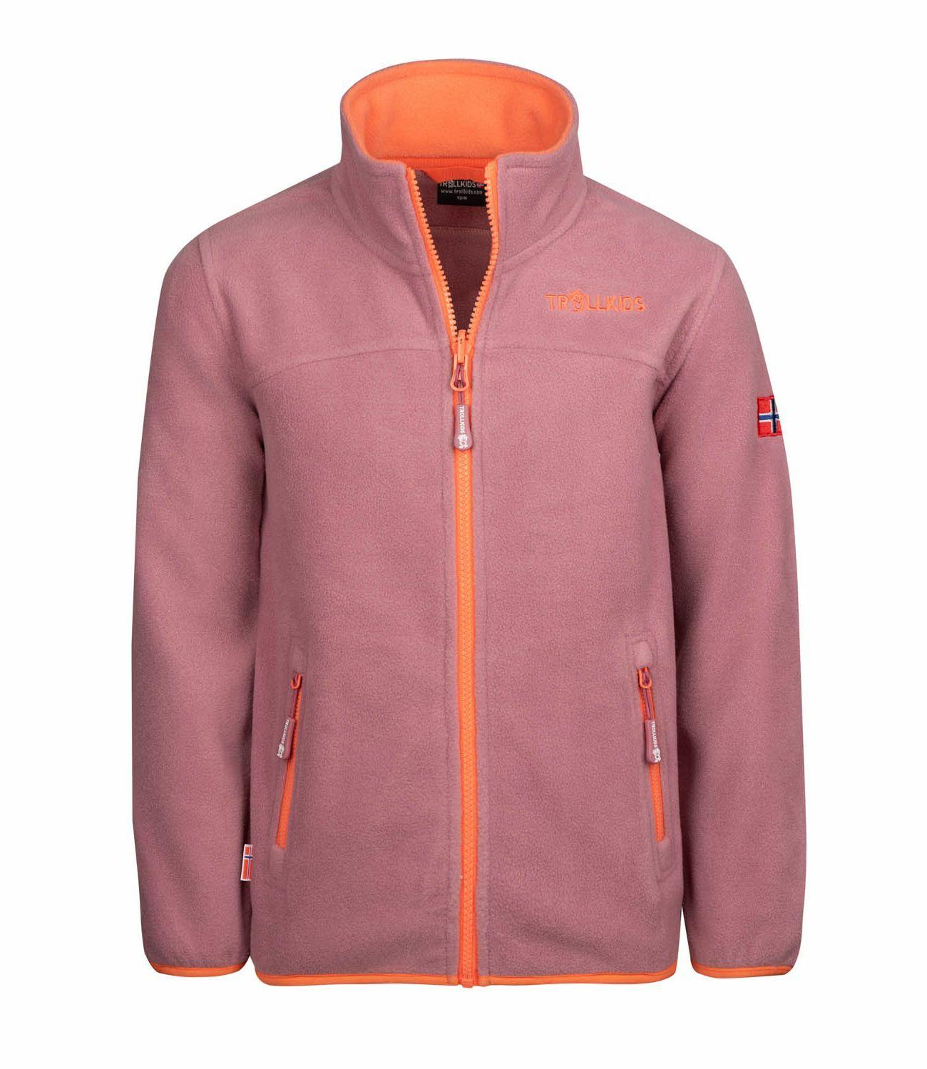 Kuschelige, flauschig weiche Fleece-Jacke mit hoher Wärmeleistung – dabei sehr atmungsaktiv und leicht. Mit zwei Hüfttaschen und einer Oberarmtasche mit Reißverschluss. Auf den Rücken befindet sich eine Troll-Applikation aus dem beliebten Trollkids-Logo. Die Jacke kann solo getragen werden, sie kann aber auch in die wasserdichte KIDS SOGNEFJORD (Art. 410) Jacke eingehängt bzw. eingezippt werden. Dadurch entsteht eine Doppeljacke, die das ganze Jahr über getragen werden kann. . Reißverschluss mit Kinnschutz. Material: 100 % Polyester, atmungsaktiv.