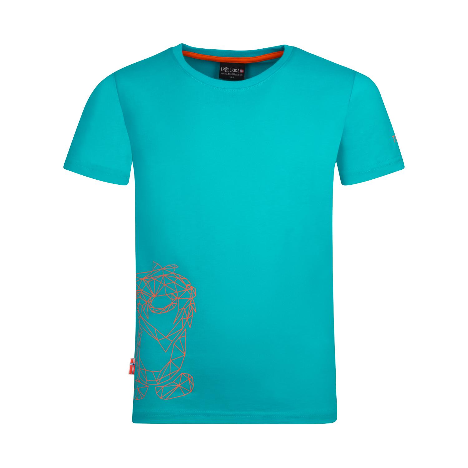 Dieses unkomplizierte T-Shirt aus Bio-Baumwolle mit stilisiertem Troll-Logo ist an warmen Tagen immer eine gute Wahl. Gegen Sonneneinstrahlung schützt das T-Shirt dank seiner UV-Schutzfunktion UPF 30+. Das ist mindestens viermal so hoch wie der eines normalen Baumwoll-T-Shirts. Weiterer Pluspunkt ist die Umweltfreundlichkeit des Material: Das T-Shirt besteht aus recycelten Polyesterfasern und Bio-Baumwolle. Gewicht: 100 g (Größe 128).