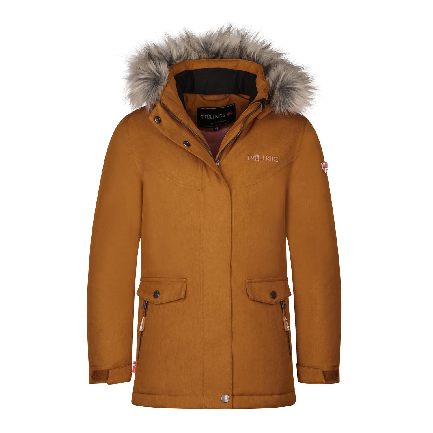 Modischer Mädchen-Wintermantel, wasserdicht, gefüttert und mit abnehmbarem Kunstpelz sowie abnehmbarer Kapuze. Genäht aus wasserdichter AQUAPROOF 10×5-Membran mit verschweißten Nähten. Die starke Wattierung garantiert gute Isolation auch bei hohen Minusgraden. Die Jacke verfügt über zwei Seitentaschen und eine innen gelagerte Brusttasche. Eine abnehmbare, verstellbare gefütterte Kapuze sorgt für genügend Wärmeisolation am Kopf. Die Kapuzenumrandung aus Kunstfell ist ebenfalls abnehmbar.