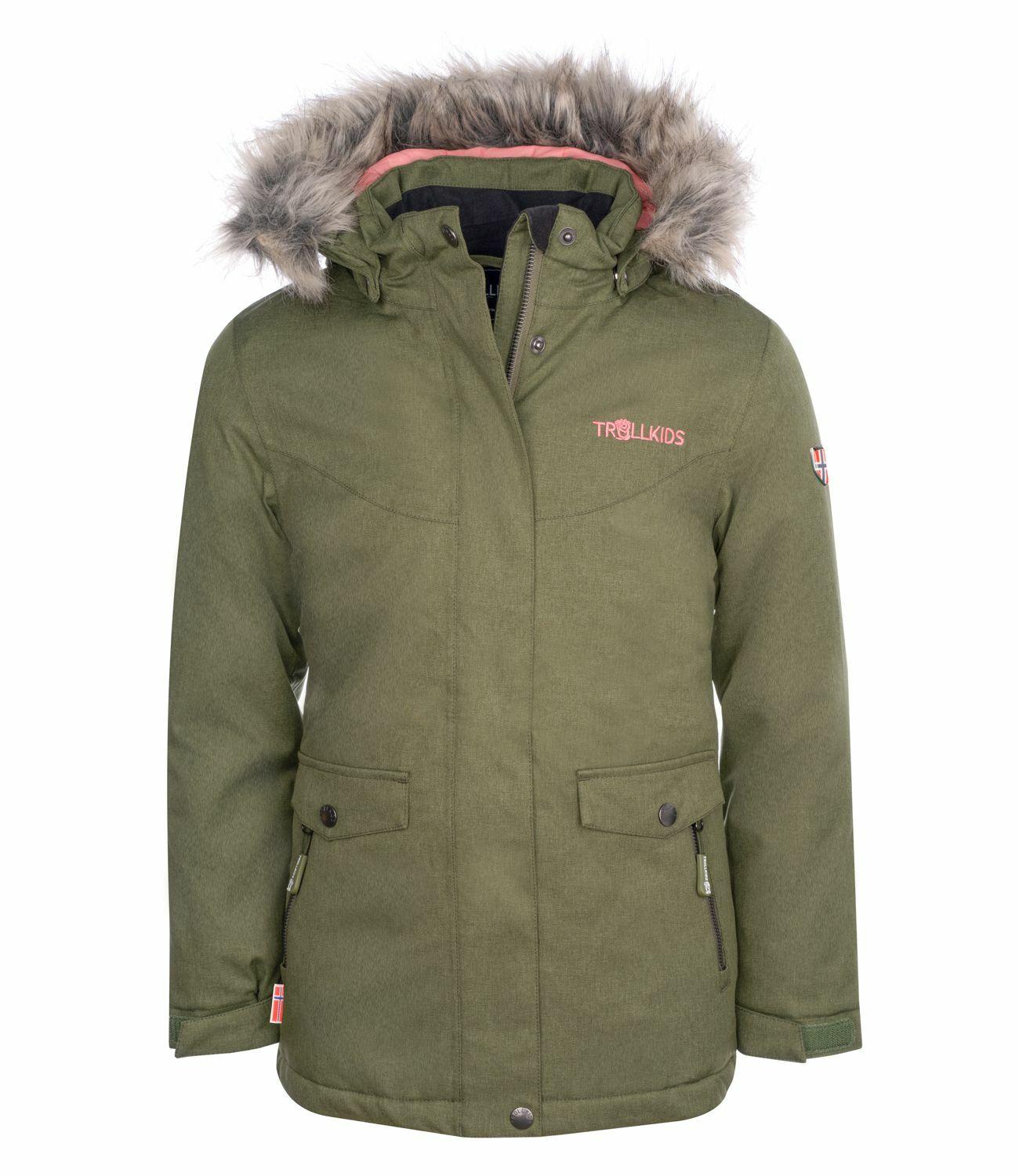 Modischer Mädchen-Wintermantel, wasserdicht, gefüttert und mit abnehmbarem Kunstpelz sowie abnehmbarer Kapuze. Genäht aus wasserdichter AQUAPROOF 10×5-Membran mit verschweißten Nähten. Die starke Wattierung garantiert gute Isolation auch bei hohen Minusgraden. Die Jacke verfügt über zwei Seitentaschen und eine innen gelagerte Brusttasche. Eine abnehmbare, verstellbare gefütterte Kapuze sorgt für genügend Wärmeisolation am Kopf. Die Kapuzenumrandung aus Kunstfell ist ebenfalls abnehmbar.