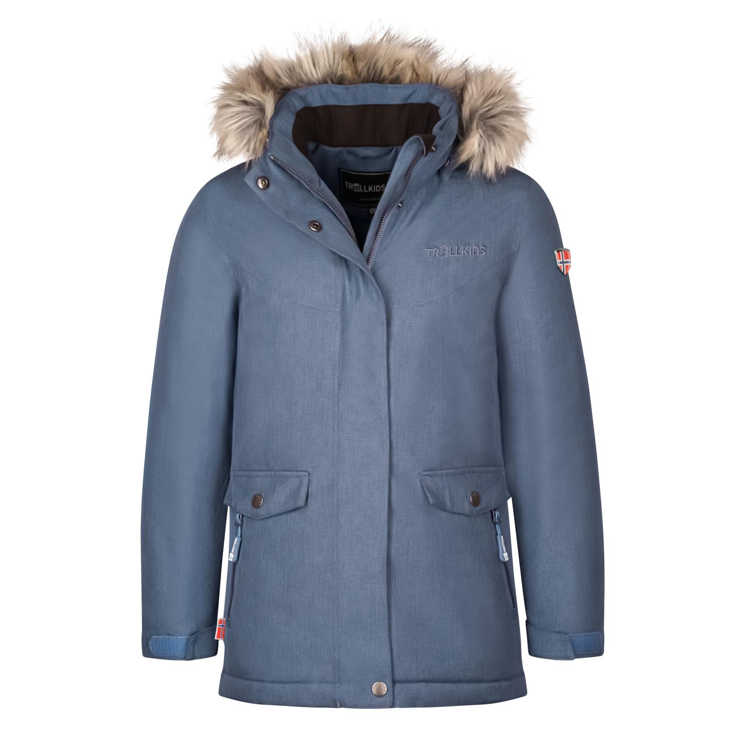 Modischer Mädchen-Wintermantel, wasserdicht, gefüttert und mit abnehmbarem Kunstpelz sowie abnehmbarer Kapuze. Genäht aus wasserdichter AQUAPROOF 10×5-Membran mit verschweißten Nähten. Die starke Wattierung garantiert gute Isolation auch bei hohen Minusgraden. Die Jacke verfügt über zwei Seitentaschen und eine innen gelagerte Brusttasche. Eine abnehmbare, verstellbare gefütterte Kapuze sorgt für genügend Wärmeisolation am Kopf. Die Kapuzenumrandung aus Kunstfell ist ebenfalls abnehmbar.