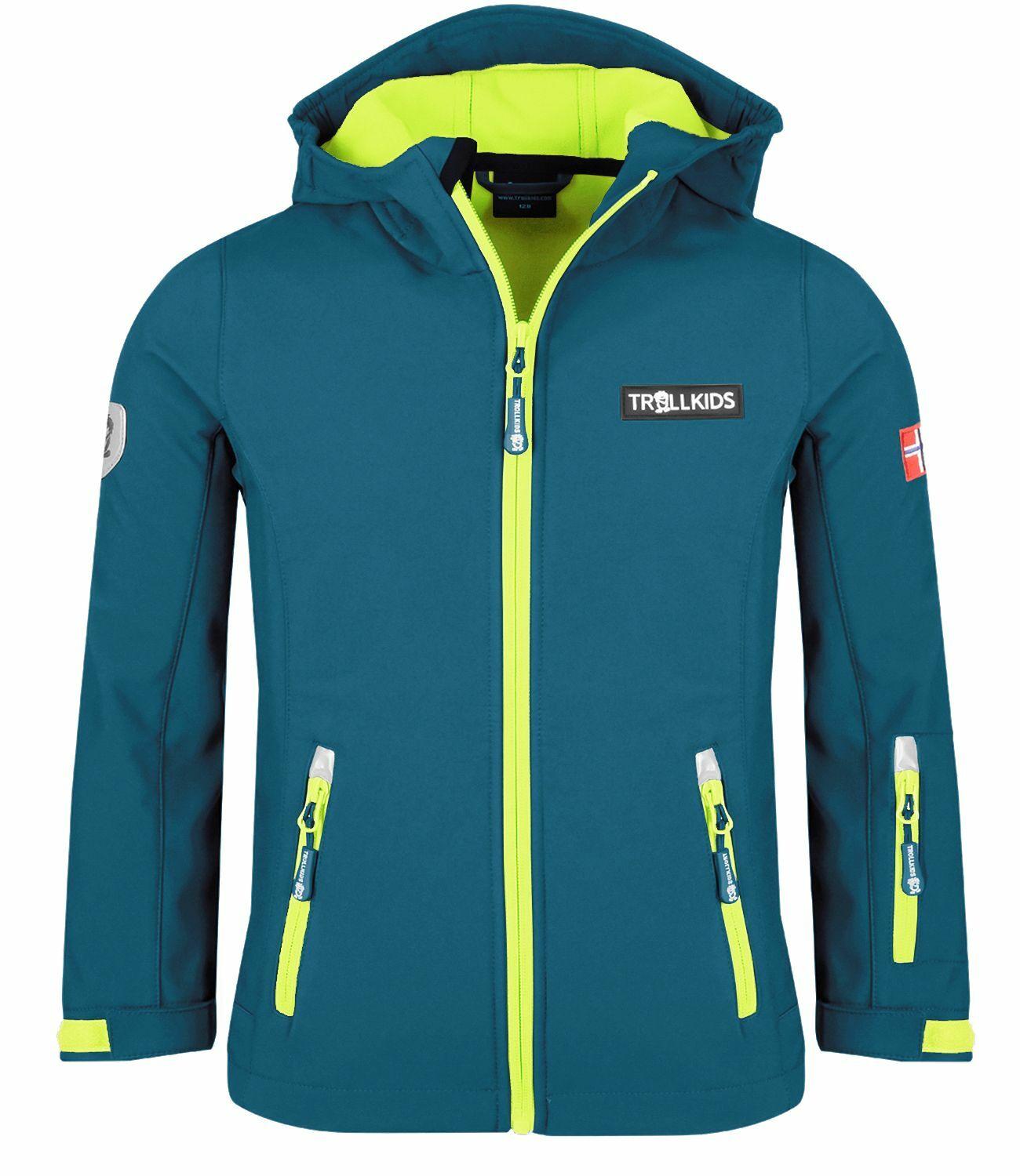 Softshell Jacke mit Armtasche und Kontrastreißverschlüssen, wasserabweisend und winddicht, flexibel elastisch und flauschig warm. Ein echtes Muss für die Übergangszeit und für Aktivitäten, bei denen ein hoher Bewegungsfreiraum benötigt wird. Darüber hinaus ein modischer Hingucker! Klettverschlüsse an den Armen sorgen dafür, dass die Ärmellänge angepasst werden kann und kein Wind durch die Bündchen dringt. Reflektoren befinden sich vorne und hinten