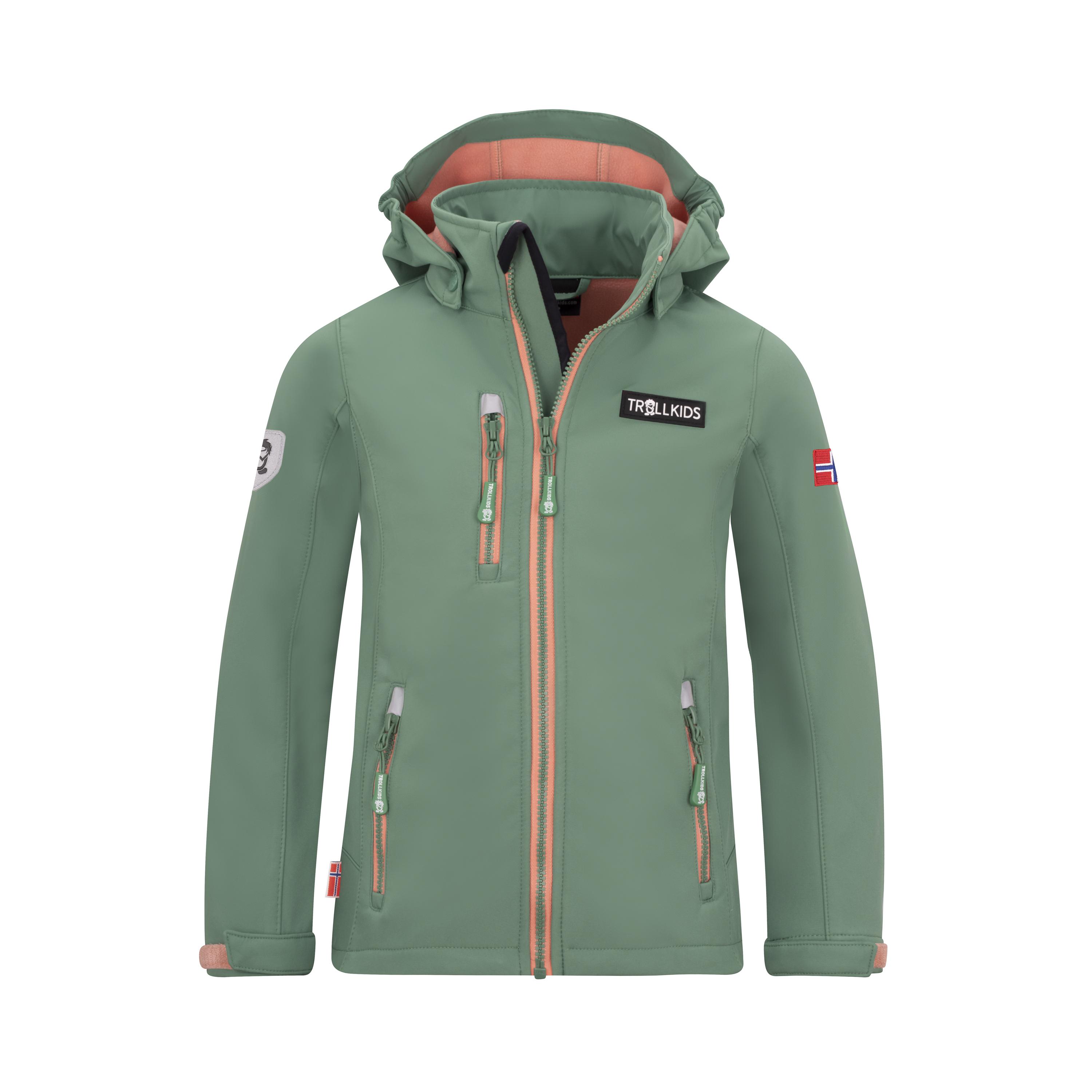 TrollkidsPreikestolen - Softshelljacke Kinder - Blattgrün/Koralle