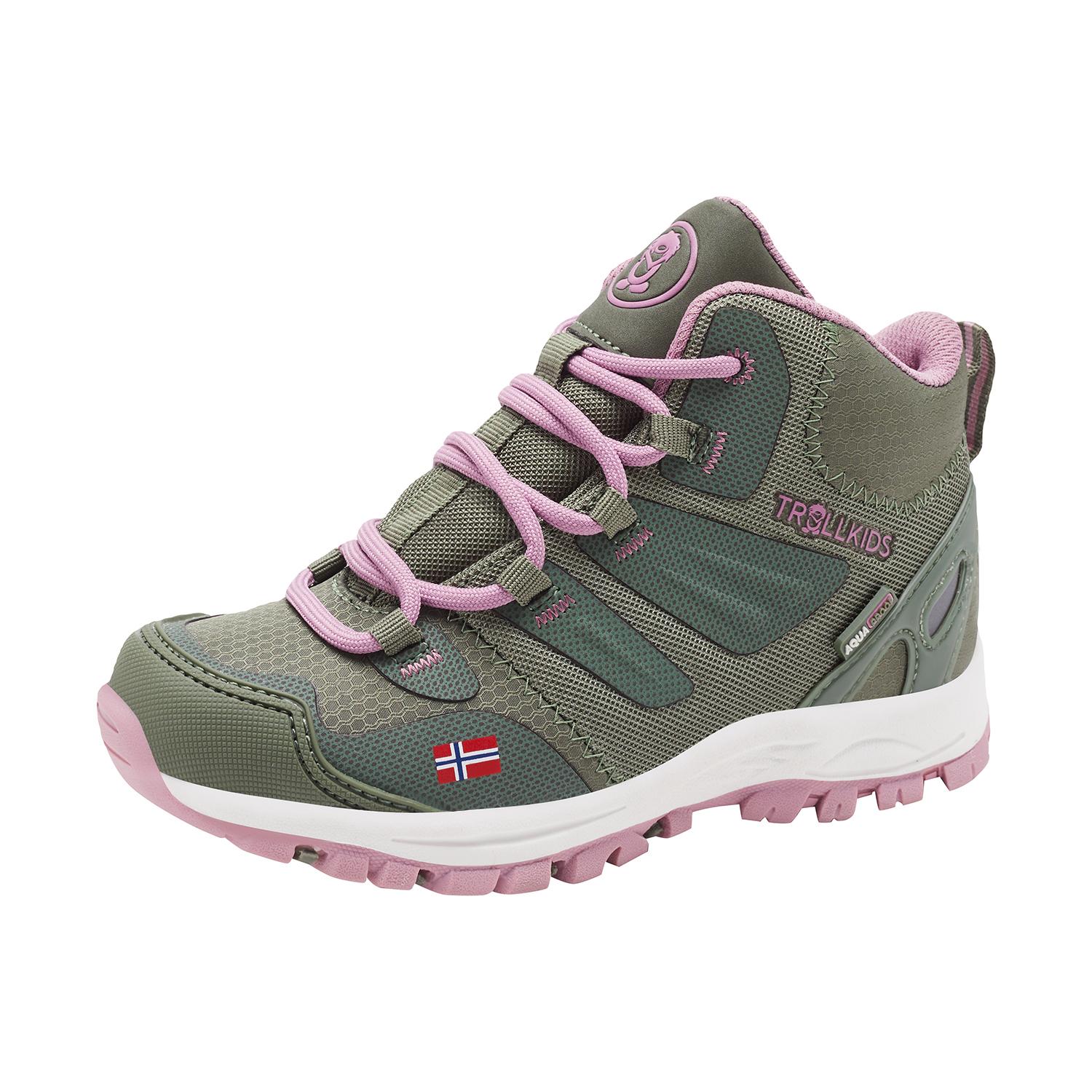 Ein wasserdichter, robuster Allrounder für die Wandertour, den Waldspaziergang oder den Nachmittag im Park, wenn's mal nass ist: Der KIDS RONDANE HIKER MID ist dank der AQUAPROOF-Membran wasserdicht und atmungsaktiv. Die halbhohe Ausführung bietet auch auf unebenem Gelände Stabilität im Knöchelbereich. Im Zehen- und Fersenbereich hat der Schuh Verstärkungen, die zusätzlichen Halt verleihen und den Fuß schützen. Gewicht: 550 g (Größe 31/32).