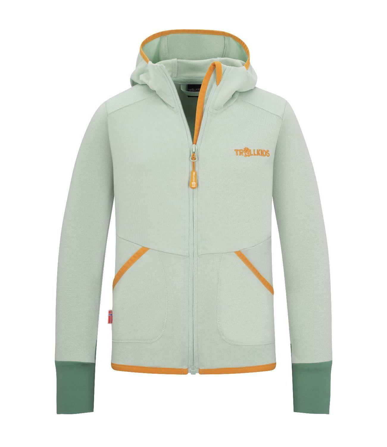 Die GIRLS SALTFJORD JACKET ist eine körpernah geschnittene Fleecejacke aus glattem, dehnbarem Stretch-Fleece-Material. Sie lässt sich sehr gut mit anderen Bekleidungsschichten kombinieren und eignet sich perfekt als Midlayer, wärmt aber auch solo getragen an kühleren Sommertagen. Die Jacke hat eine angeschnittene Kapuze.