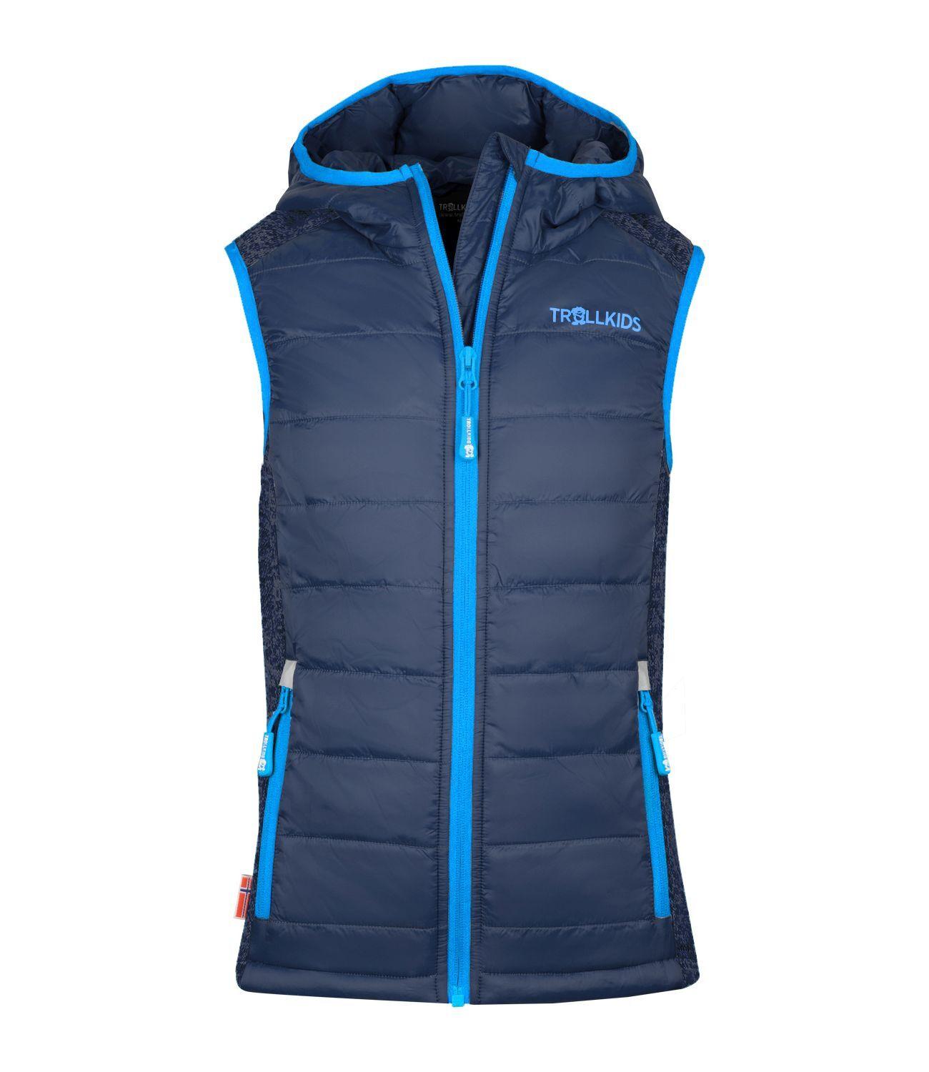 Vielseitig, leicht, unkompliziert und in sportlicher Optik: Die Hybrid-Weste KIDS SKABU VEST ist die perfekte Kombination von elastischen Strickfleece-Einsätzen an den Seiten und wärmenden Partien mit weicher, leichter Polyfaser-Füllung am Rumpf. Sie hat eine leichte, angeschnittene Kapuze. Zwei seitliche Reißverschlusstaschen bieten sich an, um Kleinigkeiten sicher zu verstauen. Gewicht: 200 g (Größe 128). Material: Außenmaterial: 100 % Polyamid | Strickeinsätze: Fleece 200 g/m² (100 % Polyester) | Füllung: 100 % Polyester.