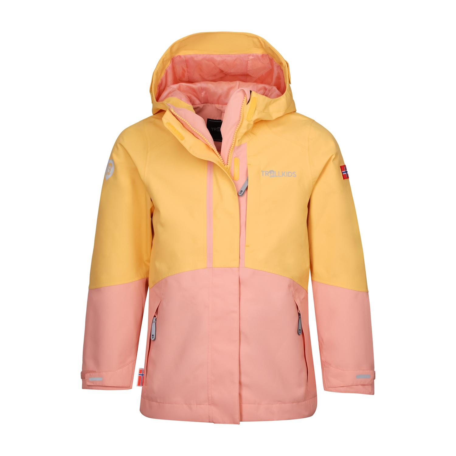 Die GIRLS SKALAND JACKET ist aus recyceltem Polyester-Stoff genäht und tut damit der Umwelt etwas Gutes: Das Material wird aus PET-Flaschen hergestellt. Das schont die Ressource Erdöl und reduziert den CO2-Ausstoß. Die leichte, wasserdichte Jacke mit Mesh-Innenfutter hat zwei Hüft-Reißverschlusstaschen vorne, eine Brusttasche mit Reißverschluss und eine angeschnittene, hinten und am Saum beidseits mit Klett verstellbare Kapuze - für eine optimale Passform. Reflektierende Details erhöhen die Sichtbarkeit. Dank des Zip-In-Systems kann die Jacke mit einer Fleece- oder wattierten Innenjacke (zum Beispiel der GIRLS SKAVANGEN JACKET aus recyceltem Polyester) zu einer warmen, wasserdichten Doppeljacke verbunden werden. Gewicht: 390 g (Größe 128).