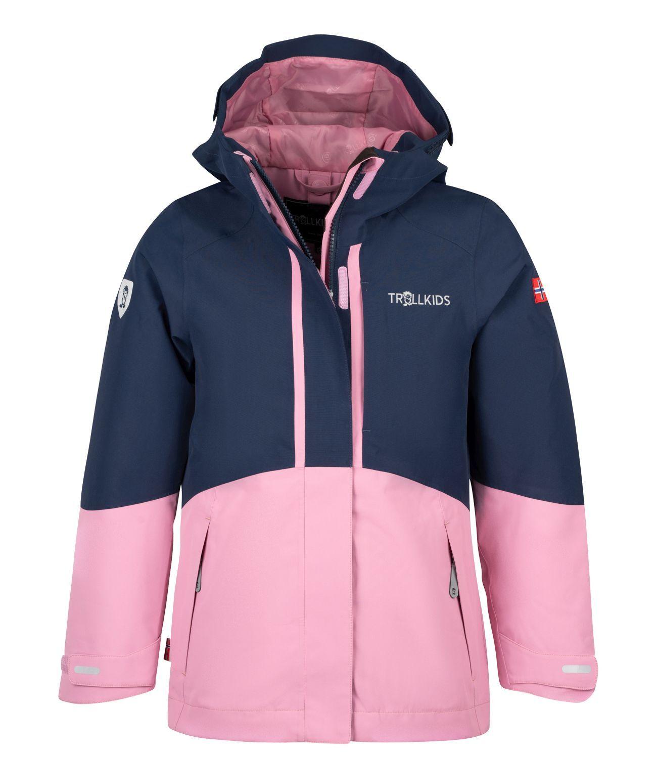 Die GIRLS SKALAND JACKET ist aus recyceltem Polyester-Stoff genäht und tut damit der Umwelt etwas Gutes: Das Material wird aus PET-Flaschen hergestellt. Das schont die Ressource Erdöl und reduziert den CO2-Ausstoß. Die leichte, wasserdichte Jacke mit Mesh-Innenfutter hat zwei Hüft-Reißverschlusstaschen vorne, eine Brusttasche mit Reißverschluss und eine angeschnittene, hinten und am Saum beidseits mit Klett verstellbare Kapuze - für eine optimale Passform. Reflektierende Details erhöhen die Sichtbarkeit. Dank des Zip-In-Systems kann die Jacke mit einer Fleece- oder wattierten Innenjacke (zum Beispiel der GIRLS SKAVANGEN JACKET aus recyceltem Polyester) zu einer warmen, wasserdichten Doppeljacke verbunden werden. Gewicht: 390 g (Größe 128).